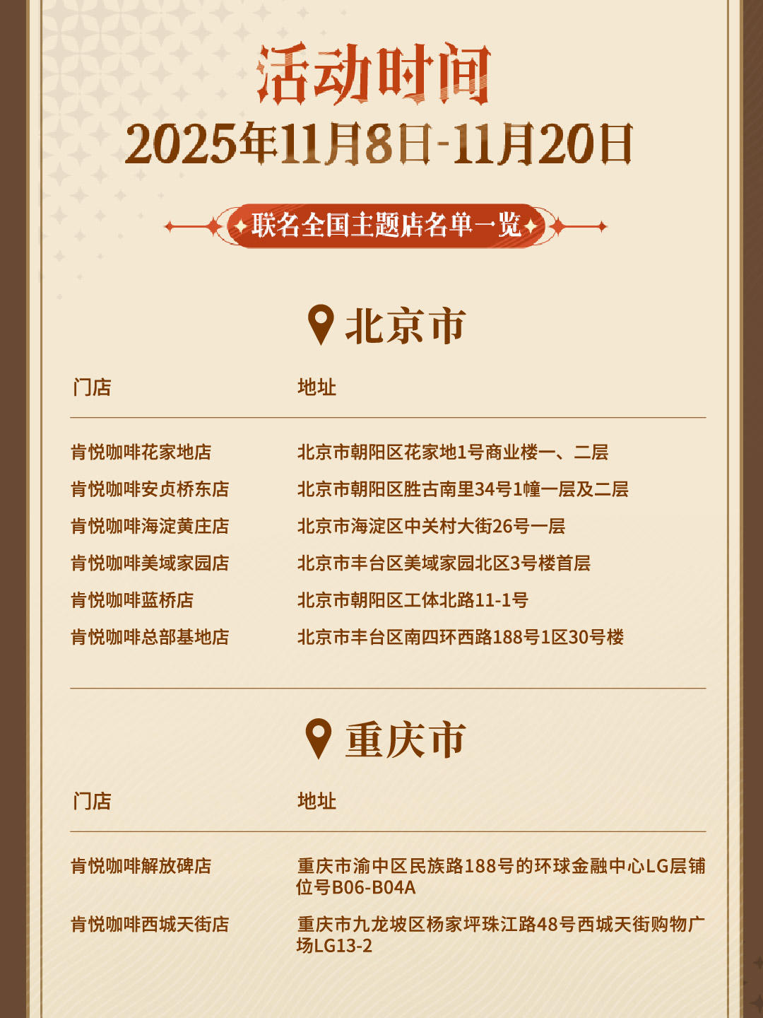 全国多家联名主题店将于11月8日正式上线,欢迎各位大魔法师前往主题店打卡,为提升大魔法师的到店体验,也辛苦各位大魔法师配合店内工作人员安排维持现场秩序~ 更多活动机制,详情请戳图片!