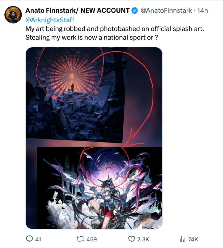 这次的情况其实是有点特殊的,原作者本身在魂系同人圈有一定影响力,而且作品发布时间又远早于皮肤,版权判定的归属确实比较明显的,而且方舟之前也出过阿斯卡伦皮肤的抄袭争议的事件,当时的处理结果是官方紧急修改了皮肤并道歉,这次又出现了类似问题,难免让玩家觉得美术审核环节存在疏漏。作为商业售卖的时装,不管是画师个人行为还是团队审核问题,版权合规都是基本要求,一旦涉及抄袭就会极大的原作者的利益。