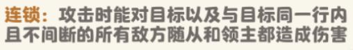 该技能赋予了死亡领主强大的穿透能力,只要敌方随从及领主是连在一起的,那整条线上的敌人都将承受死亡领主的攻击伤害!!