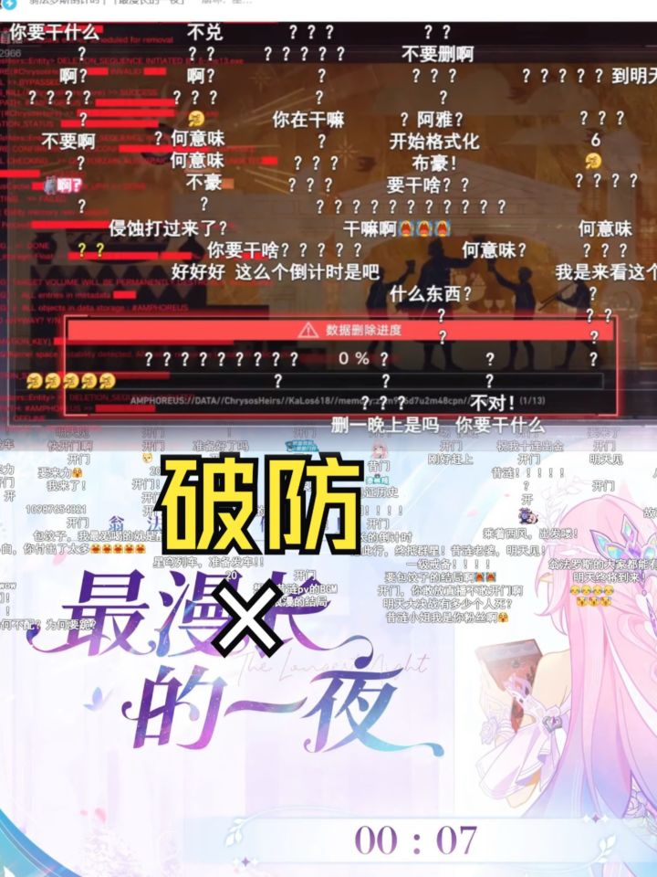 “最漫长的一夜”的直播你们看了吗?!我一开始还以为是整活,结果眼睁睁的看着PV一个个变黑,角色封面全换成了告别的话,红色代码一直跑,我鸡皮疙瘩都起来了!