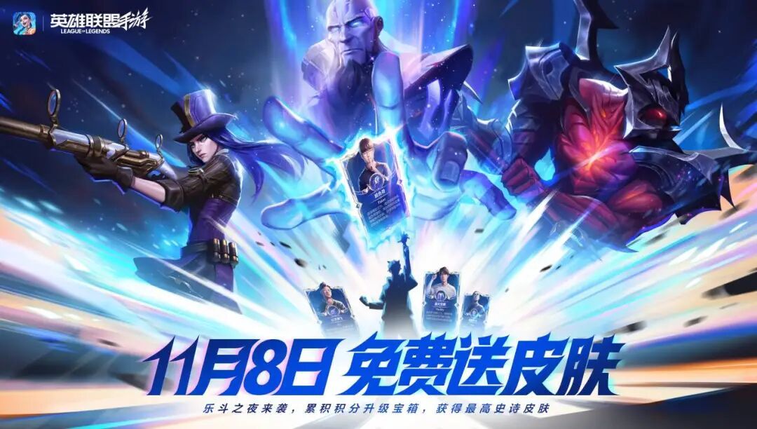 ☆ 史诗皮肤免费拿——11月8日乐斗之夜,免费皮肤直接领!召唤师累积积分升级宝箱,获取宝箱钥匙,最高可开启钻石宝箱领史诗皮肤~