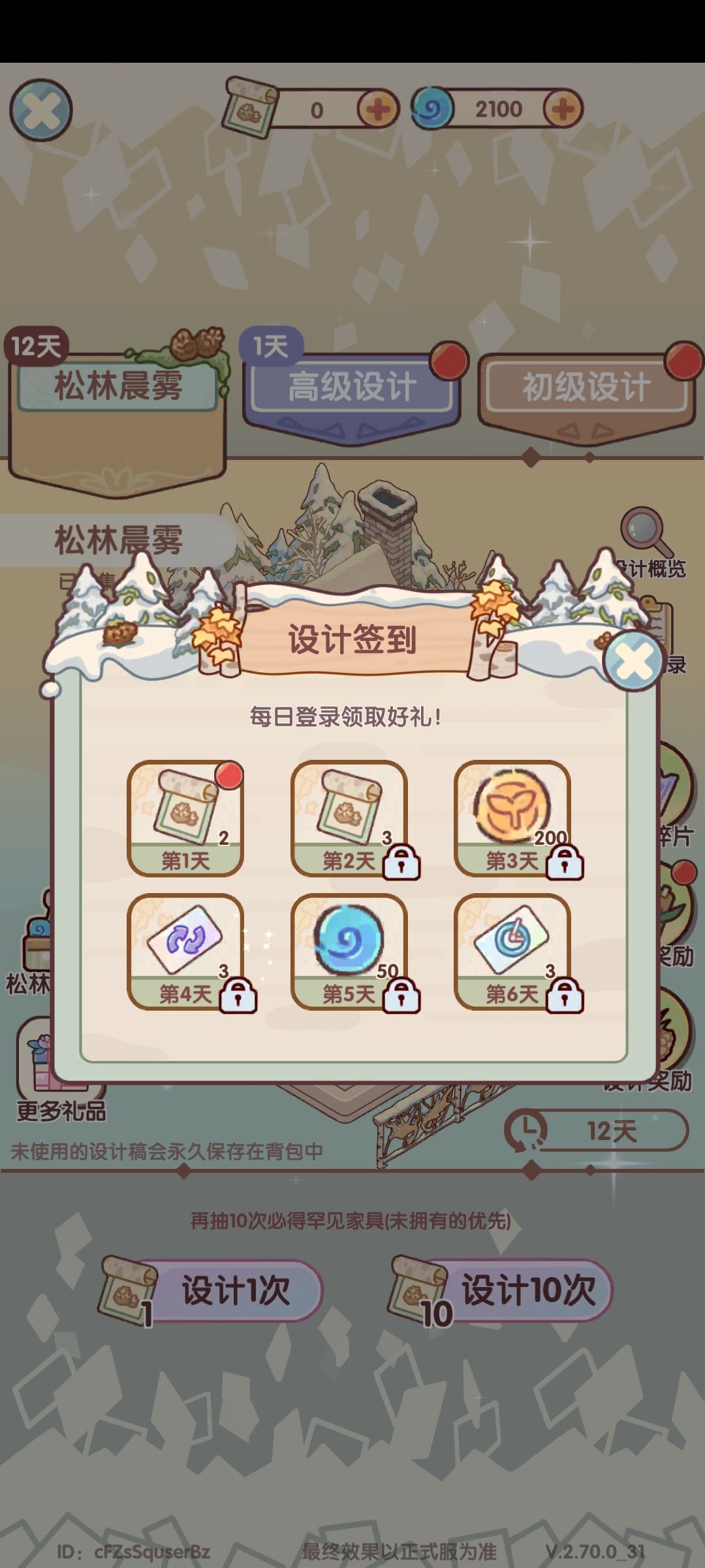 ❄️全新限时套间「松林晨雾」上线,在「设计空间」获取相应家具及摆件,完成每日签到还可获得松林设计稿*5等奖励,参与限时活动「松林迷踪」即有机会获得松林设计稿*11、蜗壳币*615等奖励!