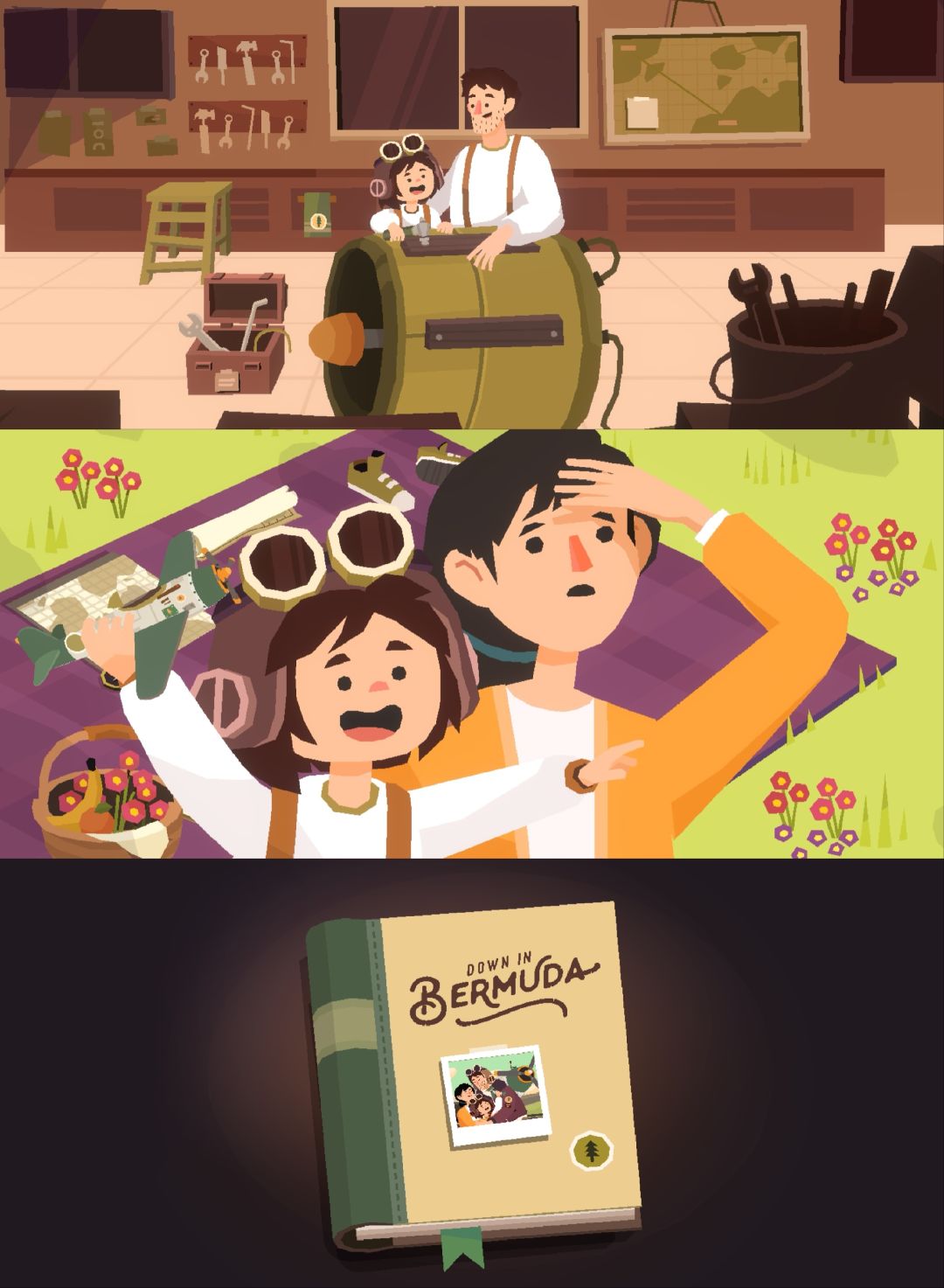 这是一个很有趣的游戏(Down in Bermuda)。游戏讲的是飞行员米尔特在驾驶直升机时,遭遇大风暴,意外跌落到百慕大群岛深处的时间泡泡里,等他着陆已经是30年后了。他在海龟岛上遇到乌龟赫曼,在它的指引下,他决定前往其他岛屿,探寻回家的路。在秘密基地岛、森林岛、沉船岛、熔岩岛、迷宫岛上,他遇到了机器人大卫、树精、鸭子嘎嘎、海盗比尔等,帮助他们解决问题。最后在陆龟雪曼的帮助下,他终于离开这个时空,回到了直升机上,变回了30年前的容貌。