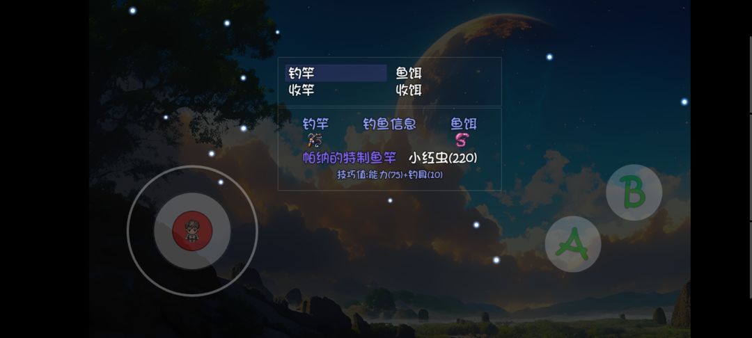 10.打开渔具装备好蛇骨宝竿,回到风车村在钓鱼佬处购买200个小红虫并装备好鱼饵,在旁边钓点钓鱼将钓鱼技巧值钓满。
