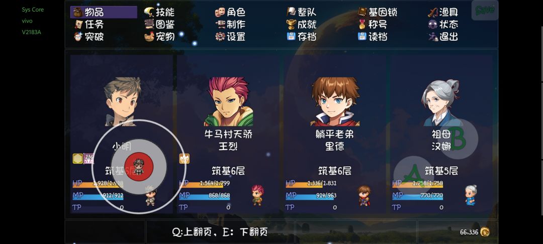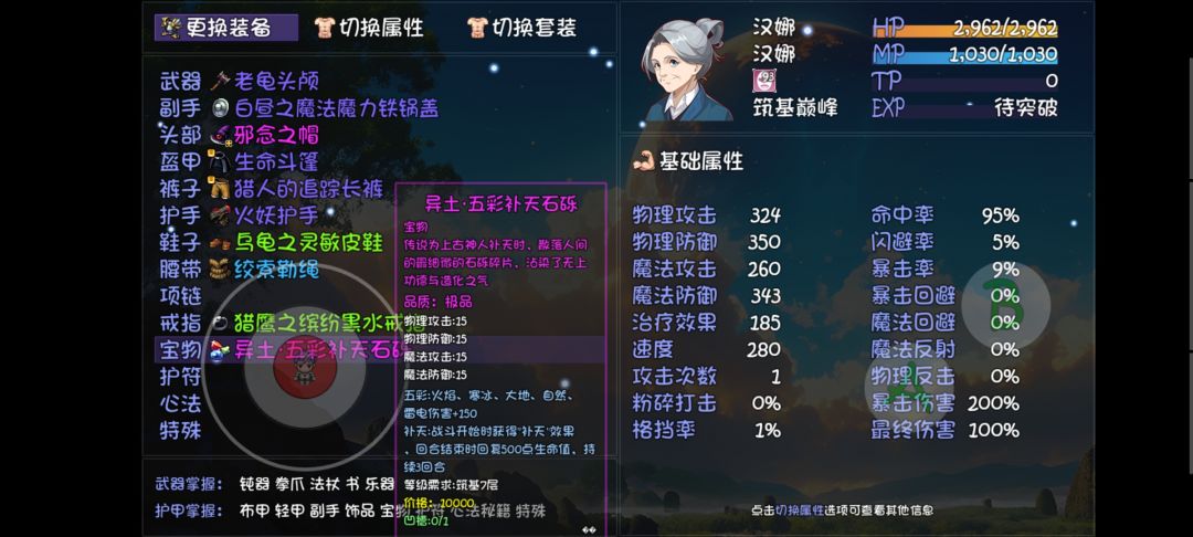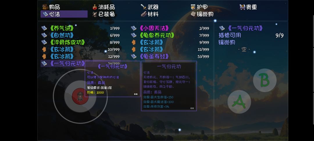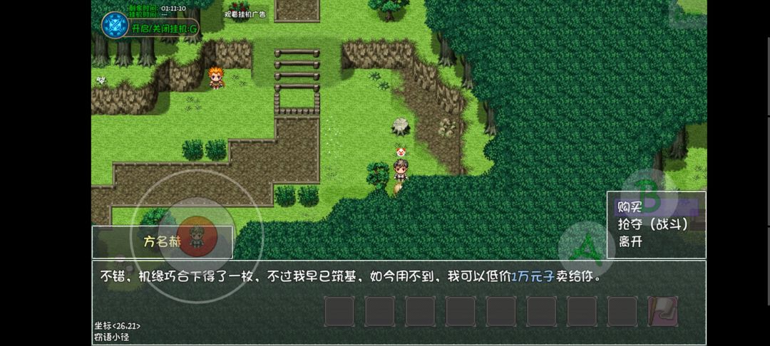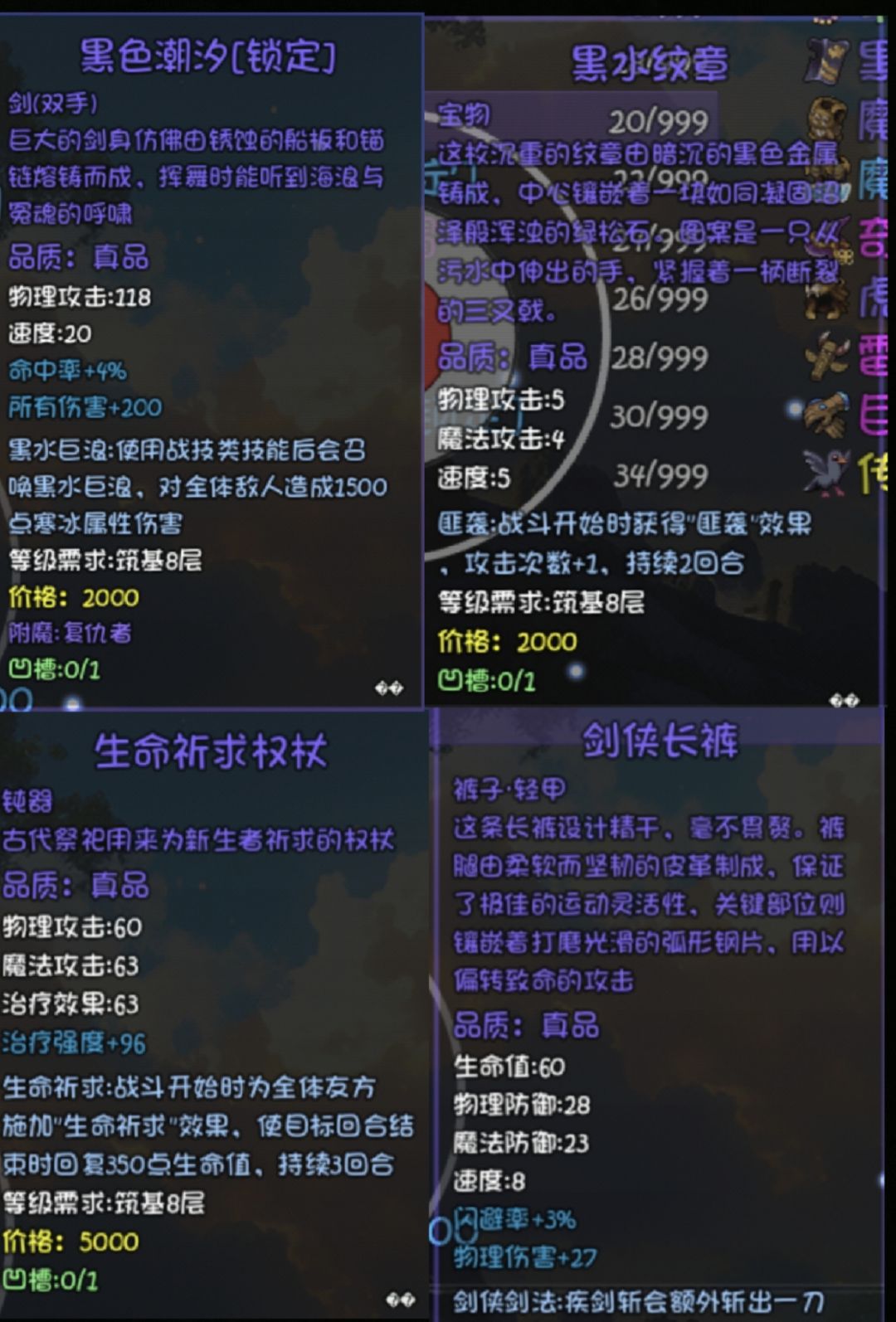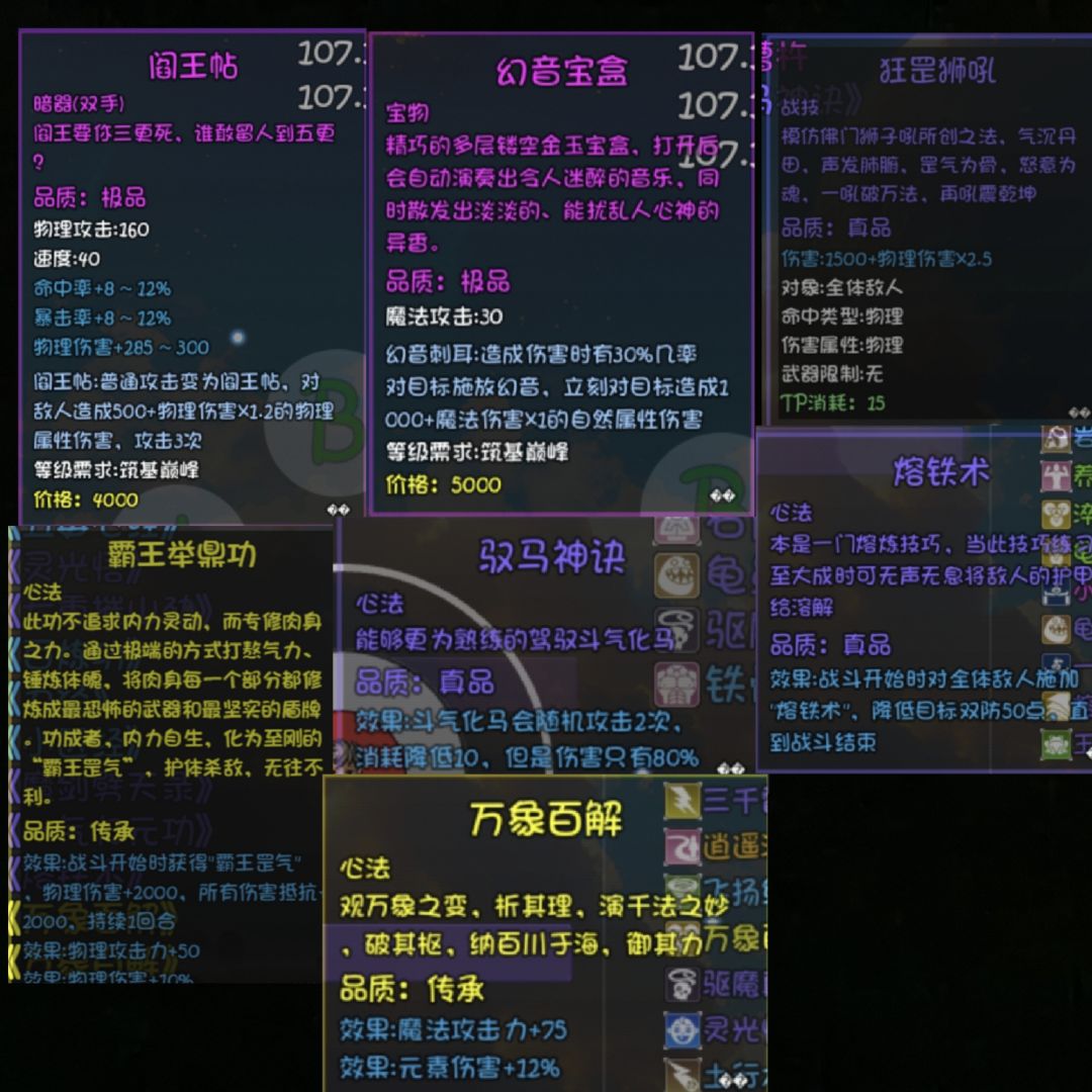 22.玩到这里基本已经可以先存档去试着刷筑基强者了,刷出来阎王贴、霸王举鼎功这些就直接起飞不再坐牢了。(小明、王烈配阎王贴加黑水纹章,狂罡狮吼是目前20版本最好用的物理群攻,驭马神诀配夜色镇抓鬼技能斗气化马也很好用。)