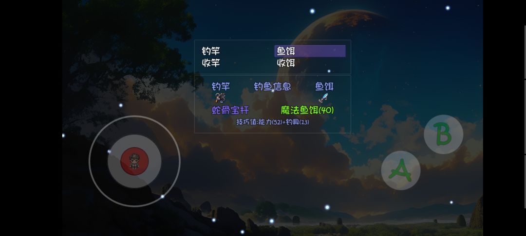 11.先使用指路灯传送至魔法之都购买40个魔法鱼饵,然后再使用指路灯前往双溪瀑钓点开始钓鱼。最初使用小红虫鱼饵钓鱼,当钓鱼技巧值提升至52时将鱼饵从小红虫更换成魔法鱼饵进行秒钓,当技巧值提升至55时将鱼饵更换回来继续钓鱼。