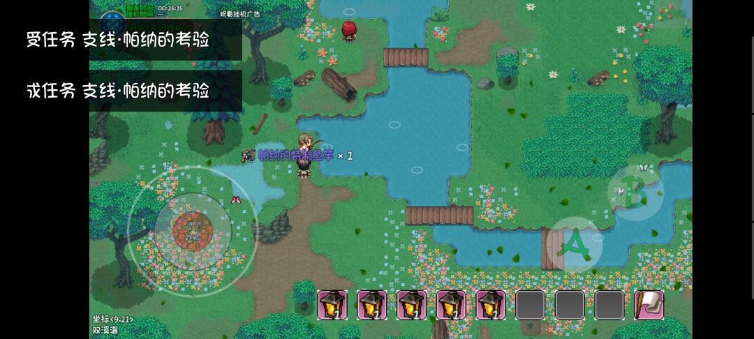 15.用指路灯传送至扬帆镇将蛇骨宝竿交给熊冲完成任务,获得心法一气归元功。接着前往至双溪瀑找到帕纳完成任务获得帕纳的特制鱼竿,装备好后在双溪瀑秒钓。