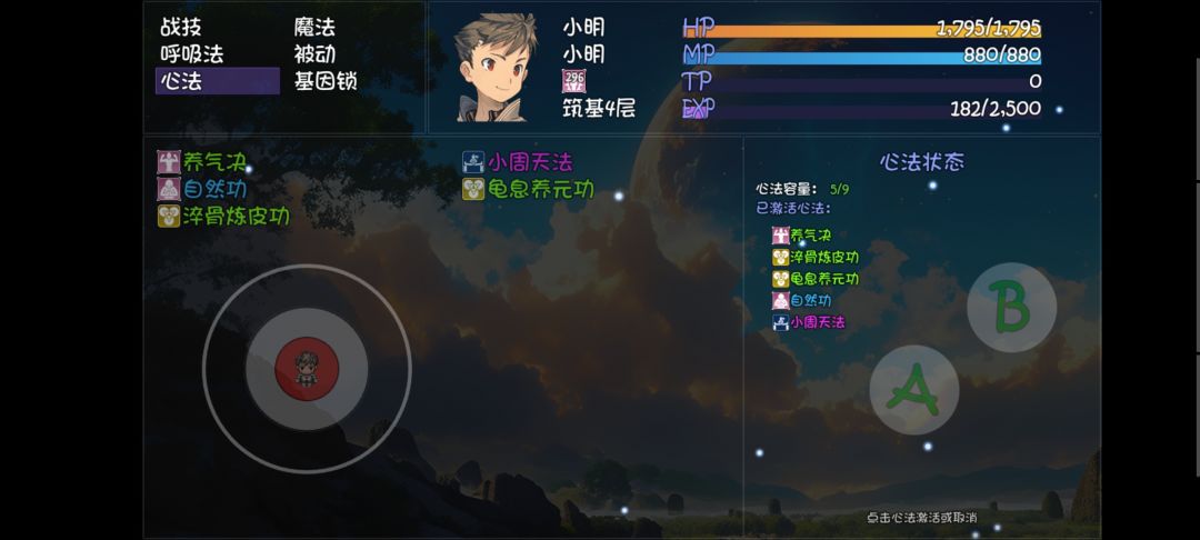 本篇攻略只要三村会武夺魁加入宗门给的筑基丹和心法,不需要门派技能和特殊物品。玩其他宗门和不同流派时,可以参考攻略流程把使用的技能和角色进行调整。因为这种玩法对装备的依赖程度低,所以在中期打怪输出会略显乏力(对比圣光教裁决系、魔法学院獾院这些肯定差远了),但这种玩法的优点是过度很平滑,能节约大量挂机时间,适合新手熟悉游戏中期流程。