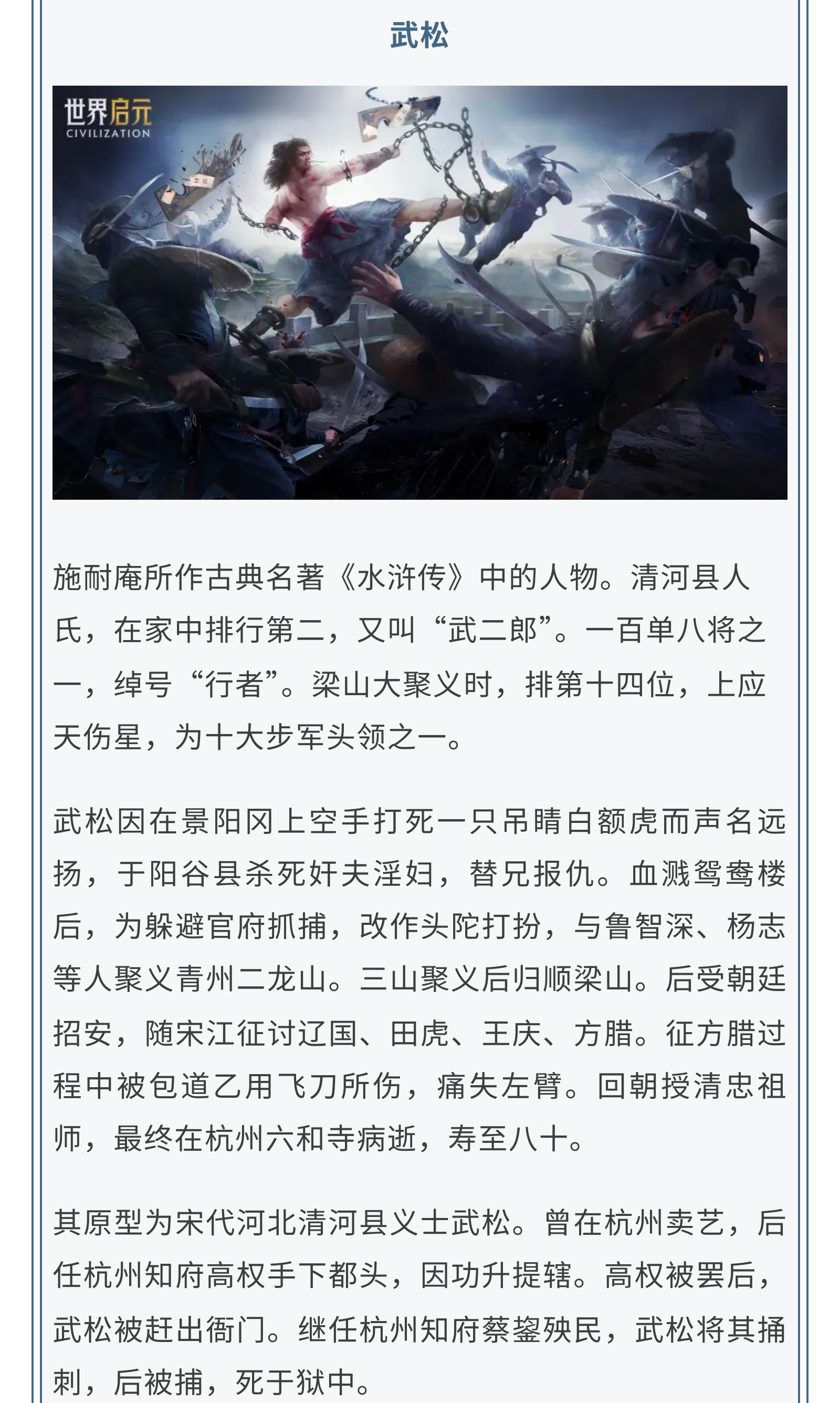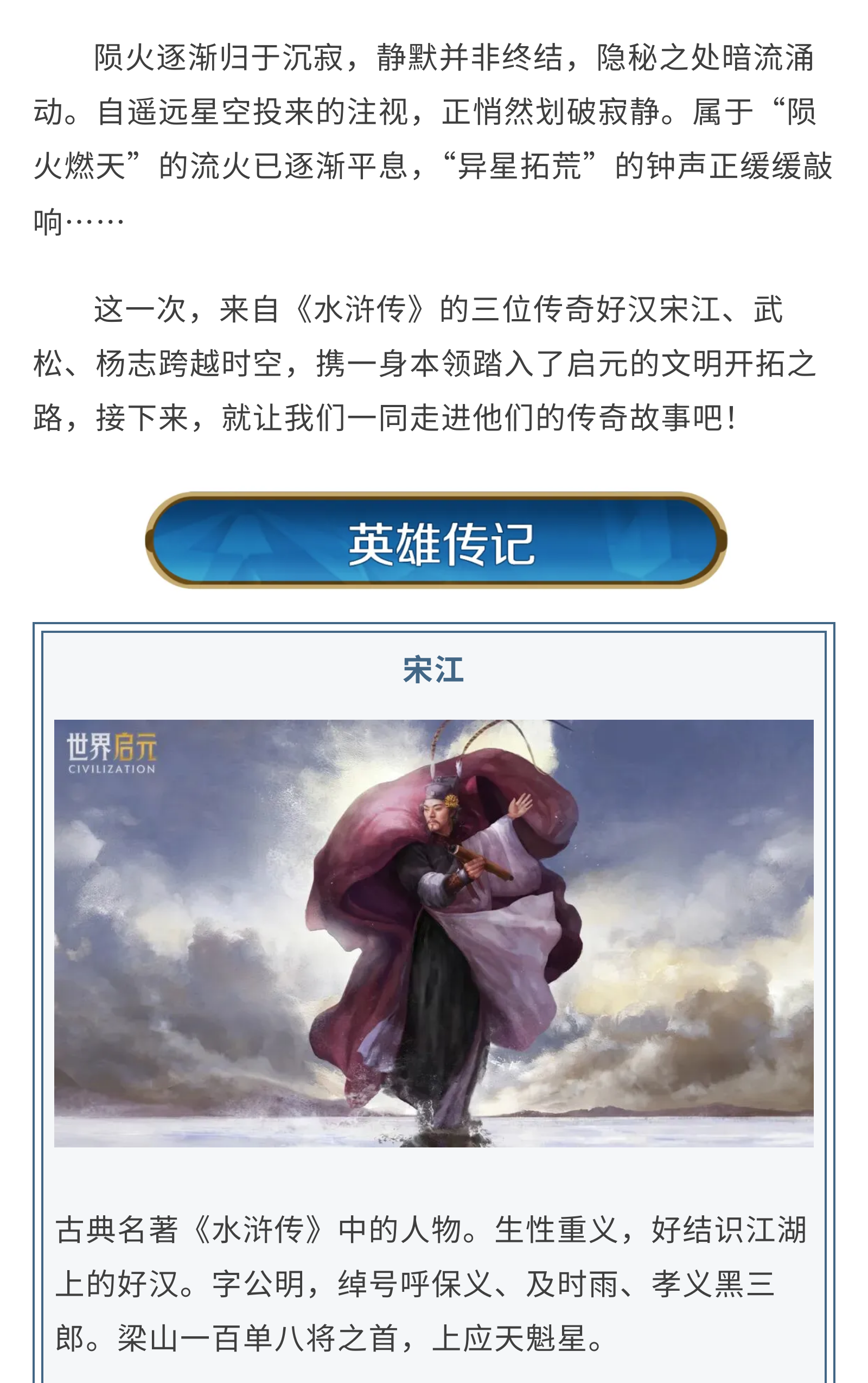 新纪元情报丨新英雄宋江、武松、杨志登场,品读人物传记
