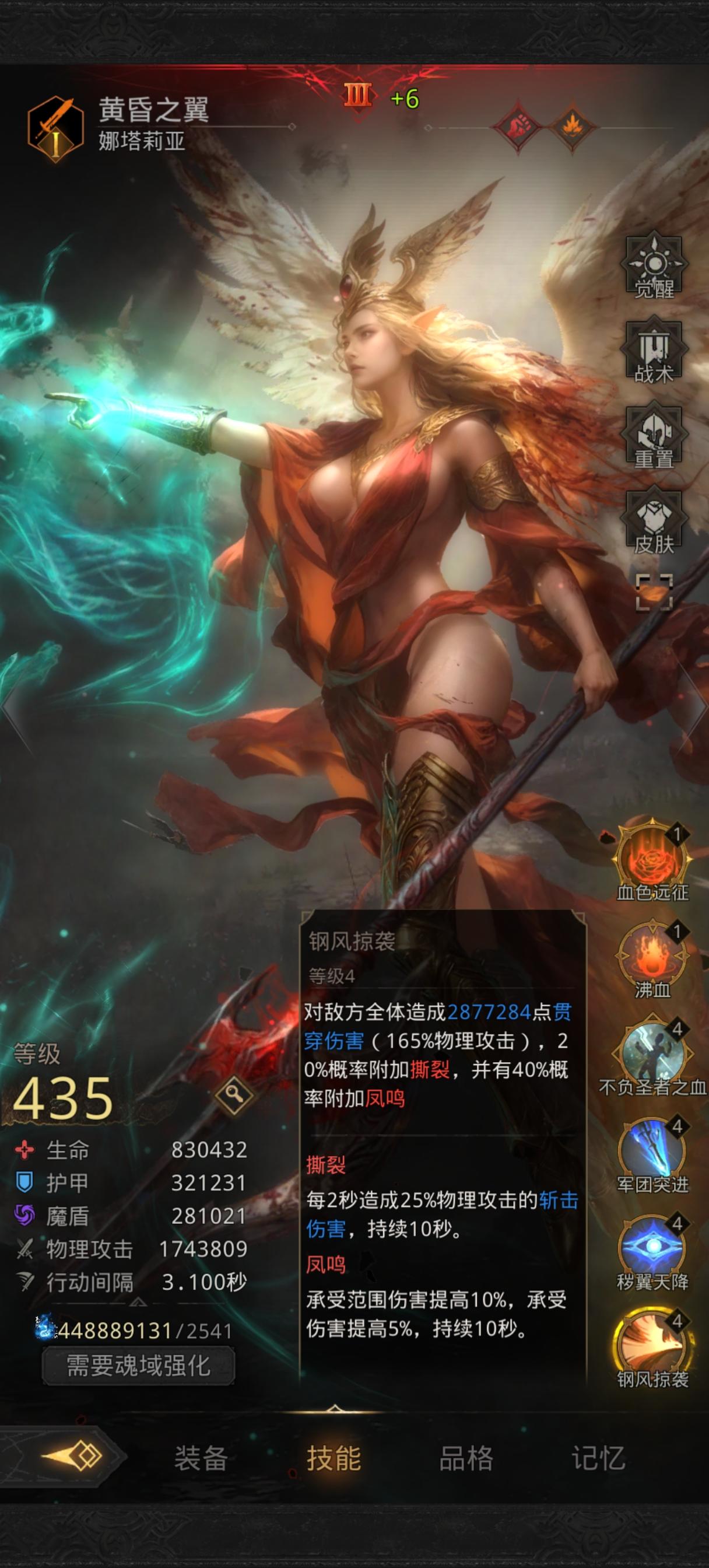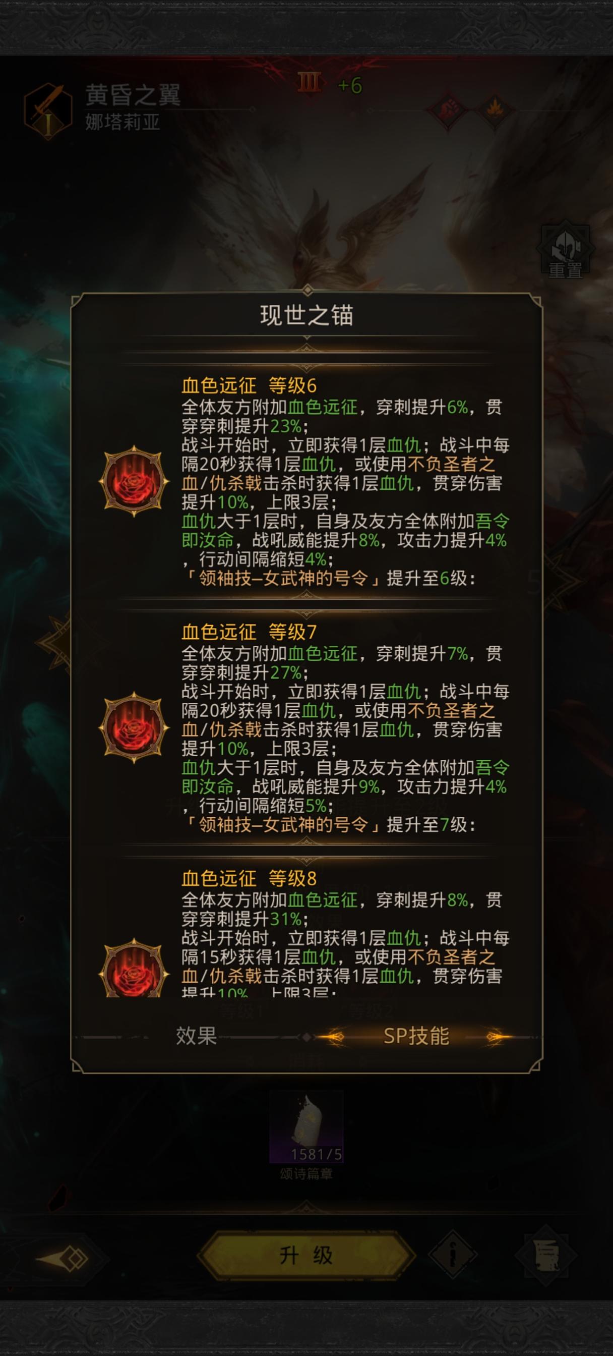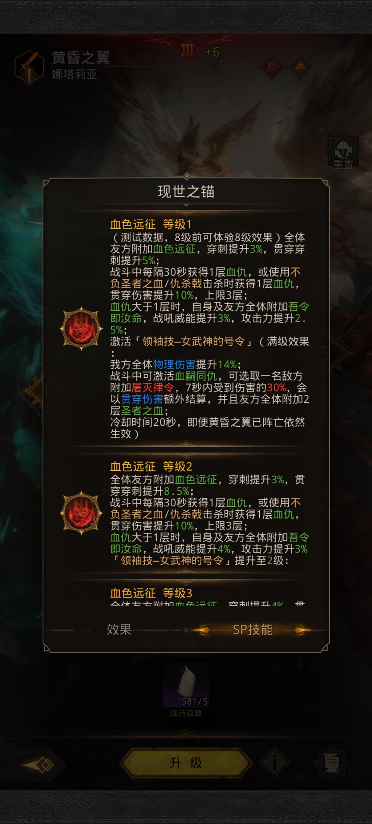 这么算仇杀戟技能系数是250% 极光7阶威能是7%算上装备的4%是11%,250%*1.11=277.5% 算极光配速是1.9吧 60秒31刀 277.5%*31=8602.5% 大漠1次战吼是1120% 系数相当于火队双C8豆,这还没算极光自己战吼的数据