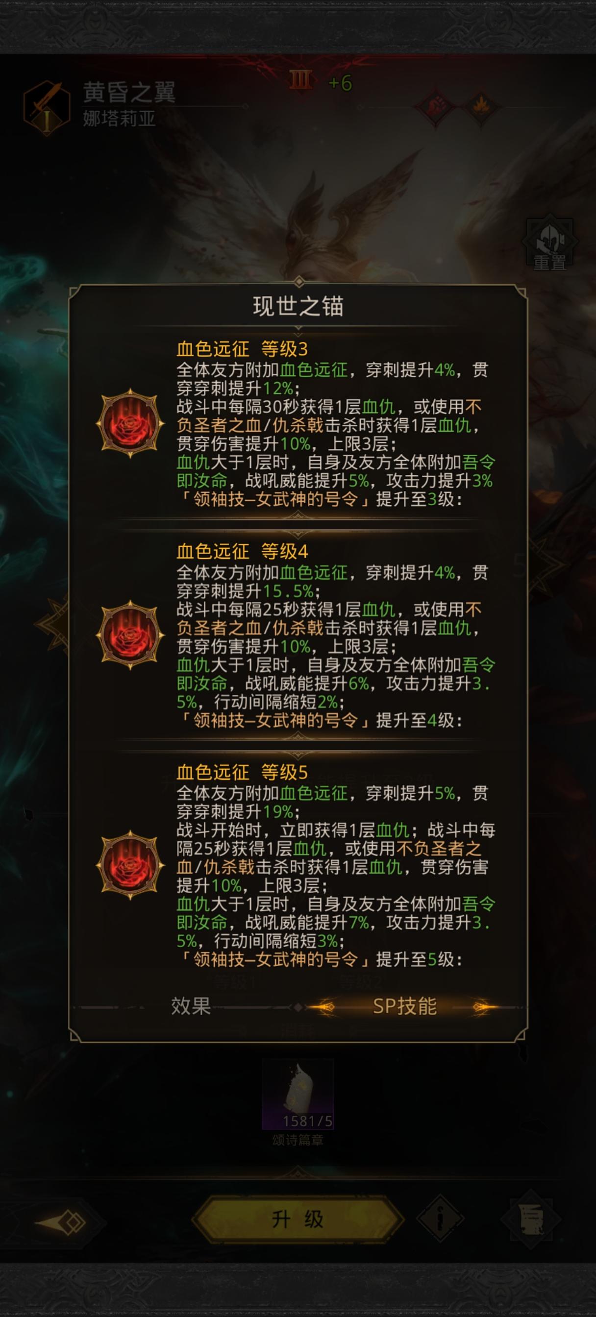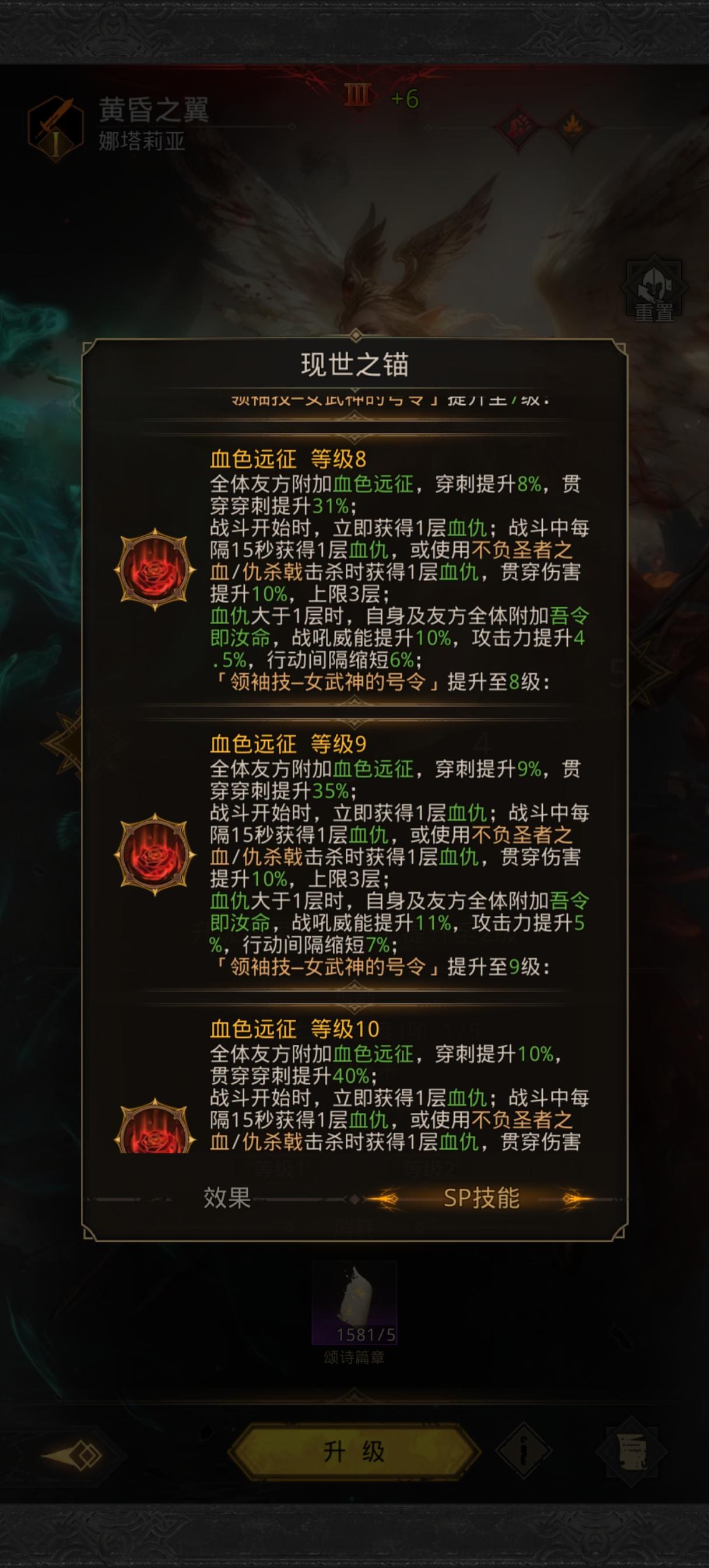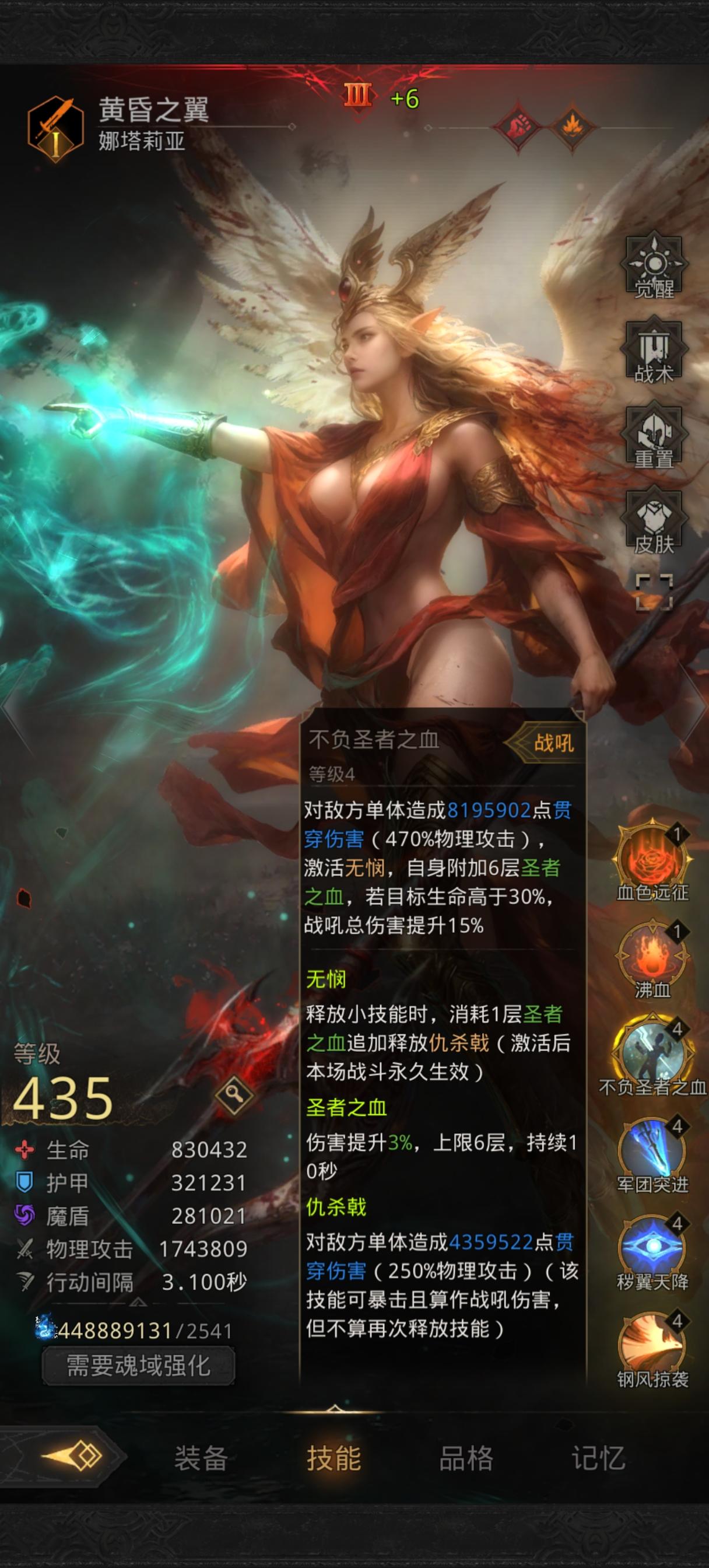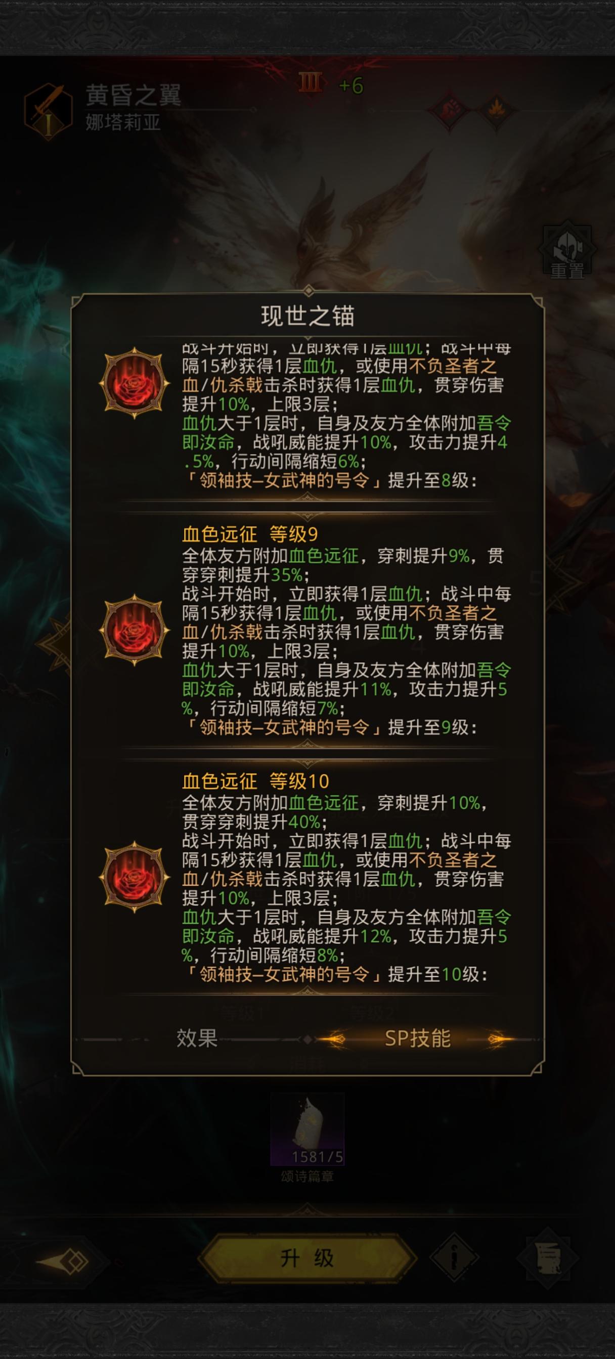 这么算仇杀戟技能系数是250% 极光7阶威能是7%算上装备的4%是11%,250%*1.11=277.5% 算极光配速是1.9吧 60秒31刀 277.5%*31=8602.5% 大漠1次战吼是1120% 系数相当于火队双C8豆,这还没算极光自己战吼的数据