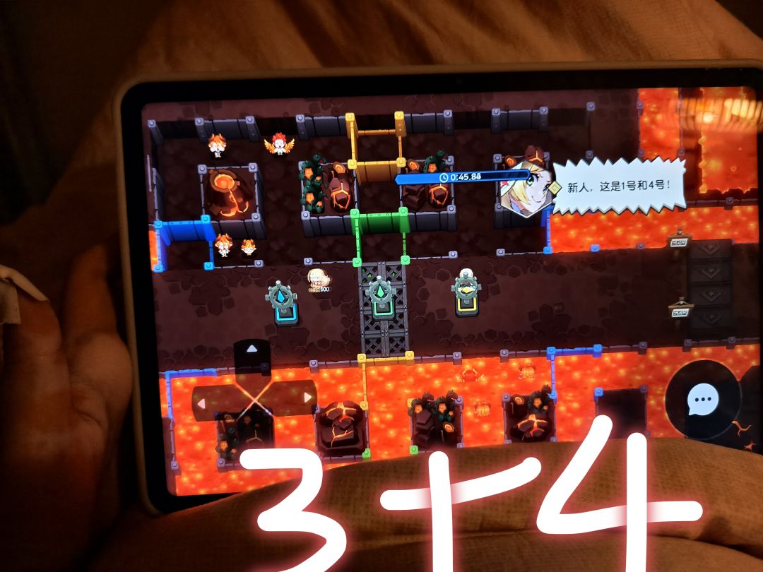 这是支线黑心老板温泉的的黄绿蓝指针方向,我自己实在记不住,导致时间不够。于是自己拍了照照抄,有需要可以看一下我的。其实窍门就是一边只动一个蓝色就能让岩浆流进来,另一个池子再用黄和绿调整