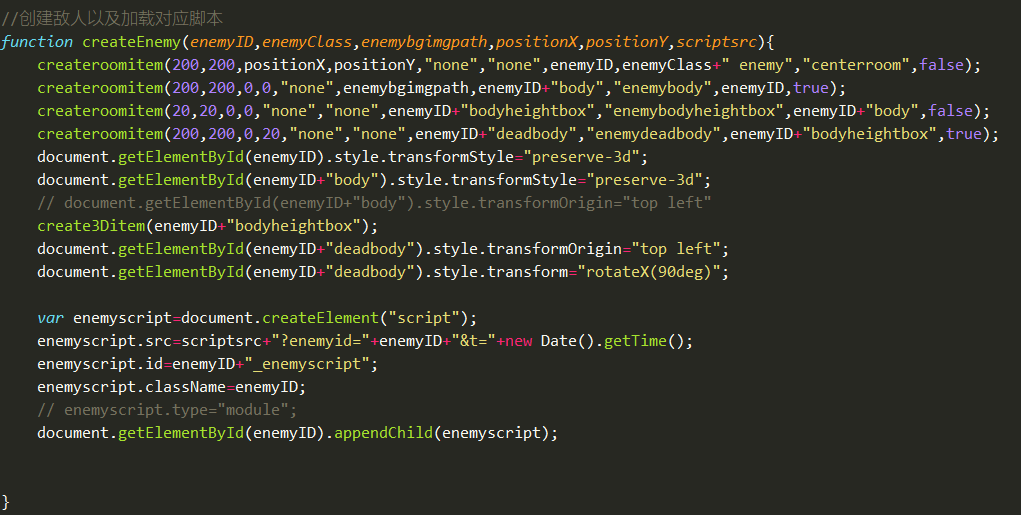 创建敌人的函数,六个参数分别为id名,类名,初始化图片路径,x坐标,y坐标,脚本路径