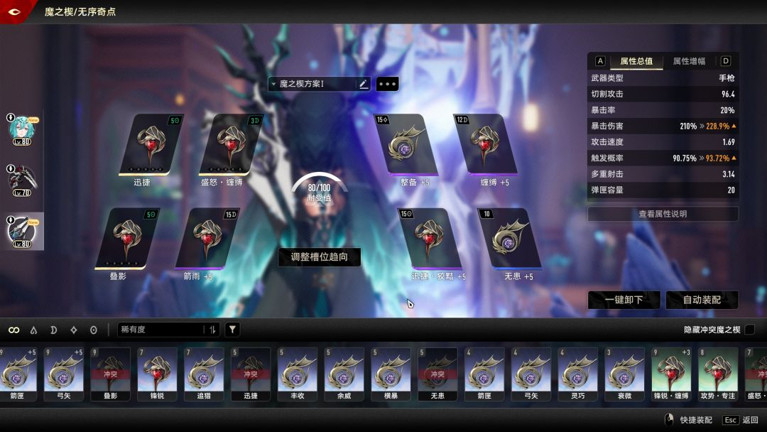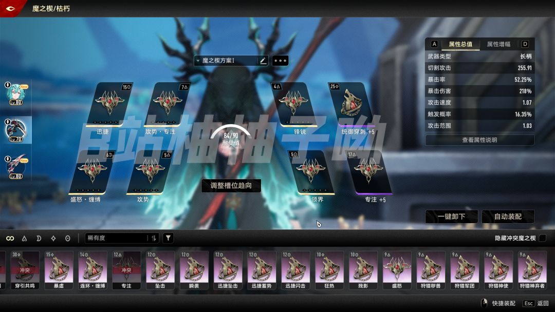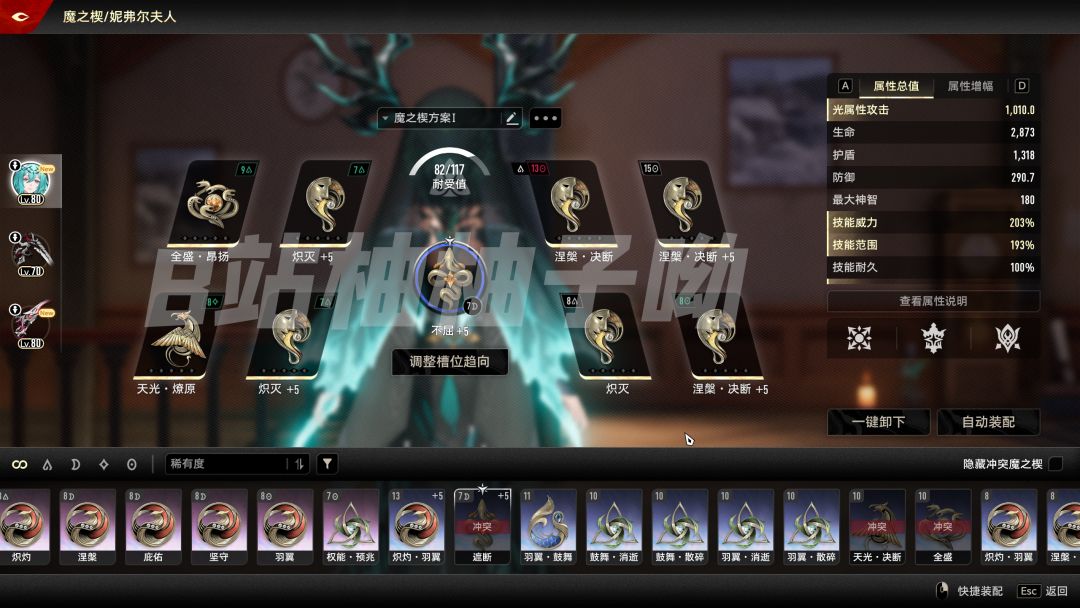 夫人远程武器:茵布拉花序。此处需要注意,在金色的盛怒·缠缚没到达+8之前,需使用紫色的进行过渡。