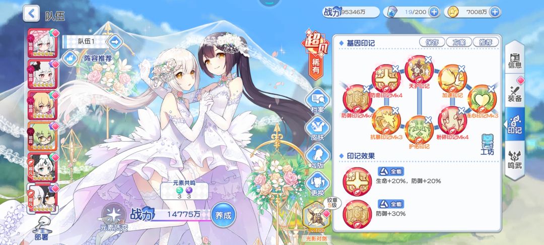 目前鸣武是亚莉莉和龙都是泡泡枪,其他4个都是心。元素方面三风三暗,亚莉莉风质变3阶,但是风元素不够了,元素精通没拉满,龙暗质变2阶,暗元素够,可以拉满元素精通。