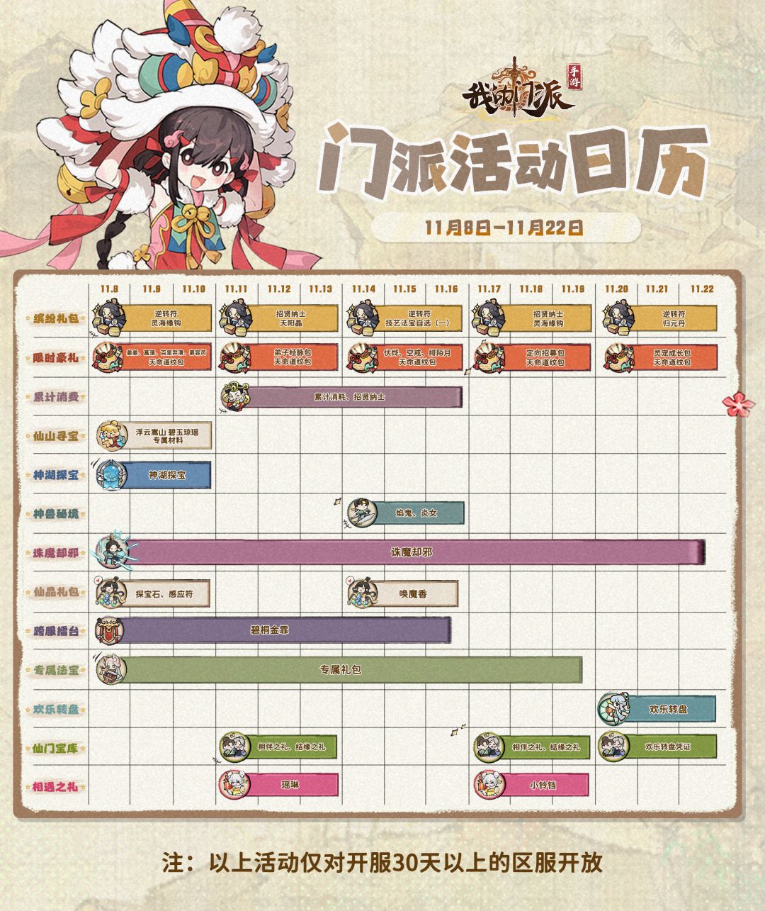 诸位掌门好呀!小师妹带来了本次的活动日历,快来一起看看吧——