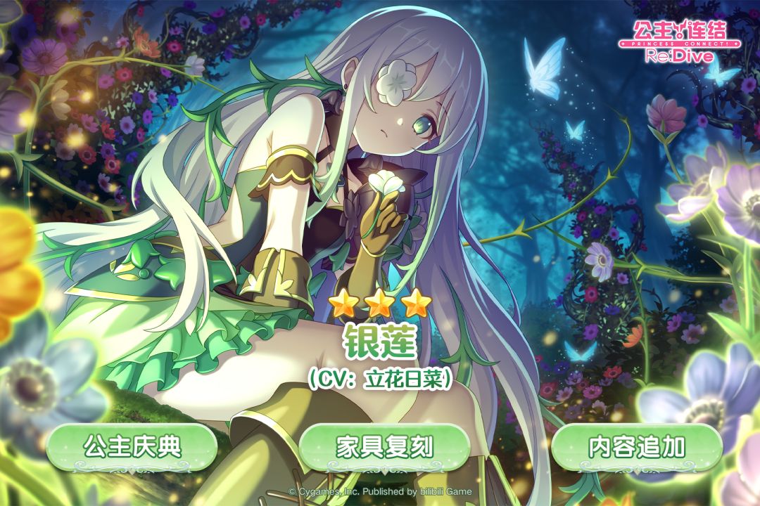维护结束后,游戏内将开启★3角色出现率2倍的「公主庆典扭蛋」,期间限定角色★3「银莲」(CV:立花日菜)及公主庆典限定角色将在「公主庆典扭蛋」中限时登场,游戏内将开展★3必得白金扭蛋;公会之家将限时复刻木制主题家具,并追加新的游戏内容!