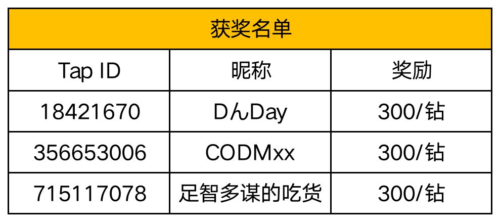 让我们恭喜以上 3 名玩家分别获得 300 钻石