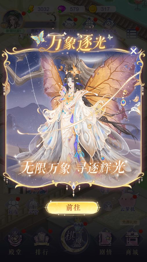 ◈ 活动期间,通过完成体力消耗任务、购买畅享礼包可获得光蝶。每200光蝶可逐光1次。逐光必得5星限定套装部件、5星背景。