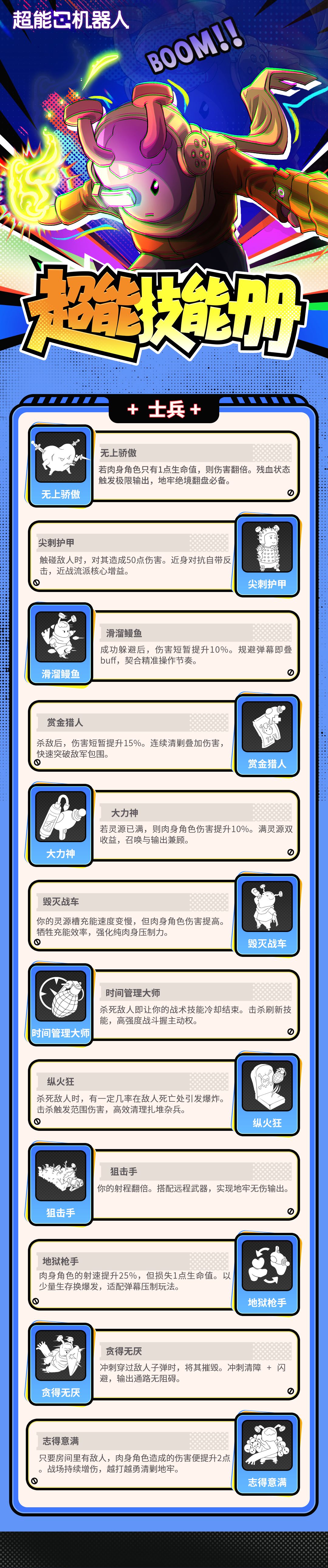 本次「超能技能册」,聚焦「士兵」成长线的核心加点逻辑 —— 从基础伤害增益到流派专属强化,从生存兜底到爆发突破,全面覆盖近战、远程、弹幕压制等多种对战方式,帮你精准匹配战斗风格,快速解锁塔亚的肉身极限战力,成为横扫机械敌军的顶尖战士!