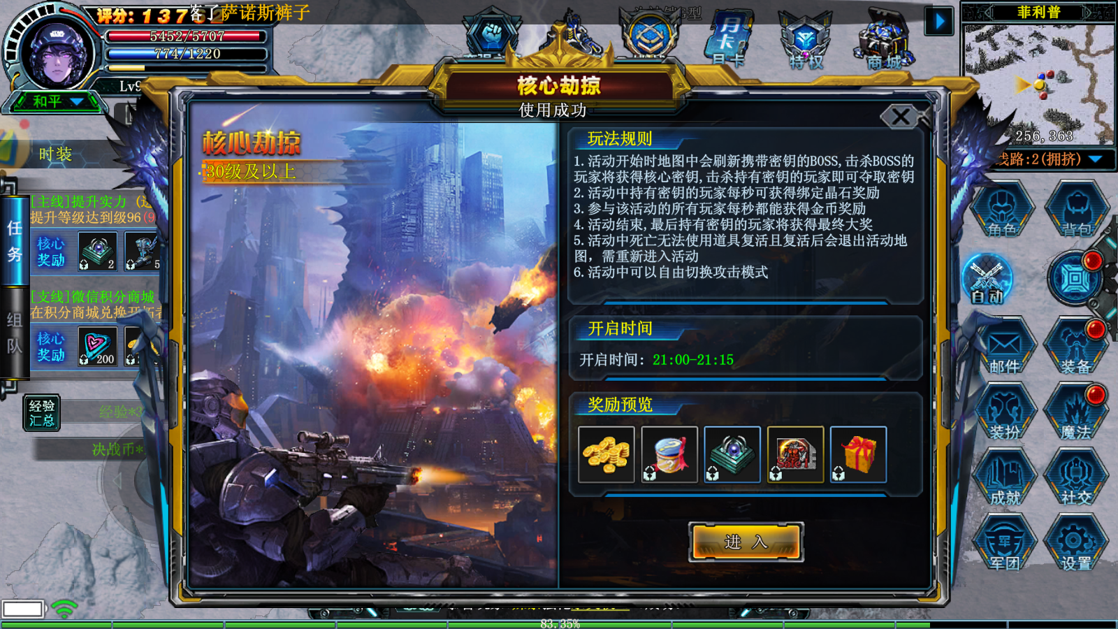 - 核心劫掠:21:00-21:15 开放,击杀密钥 BOSS 夺取密钥,持有密钥每秒获绑定晶石,全员每秒得金币,最终持有者拿大奖,竞技与收益兼得