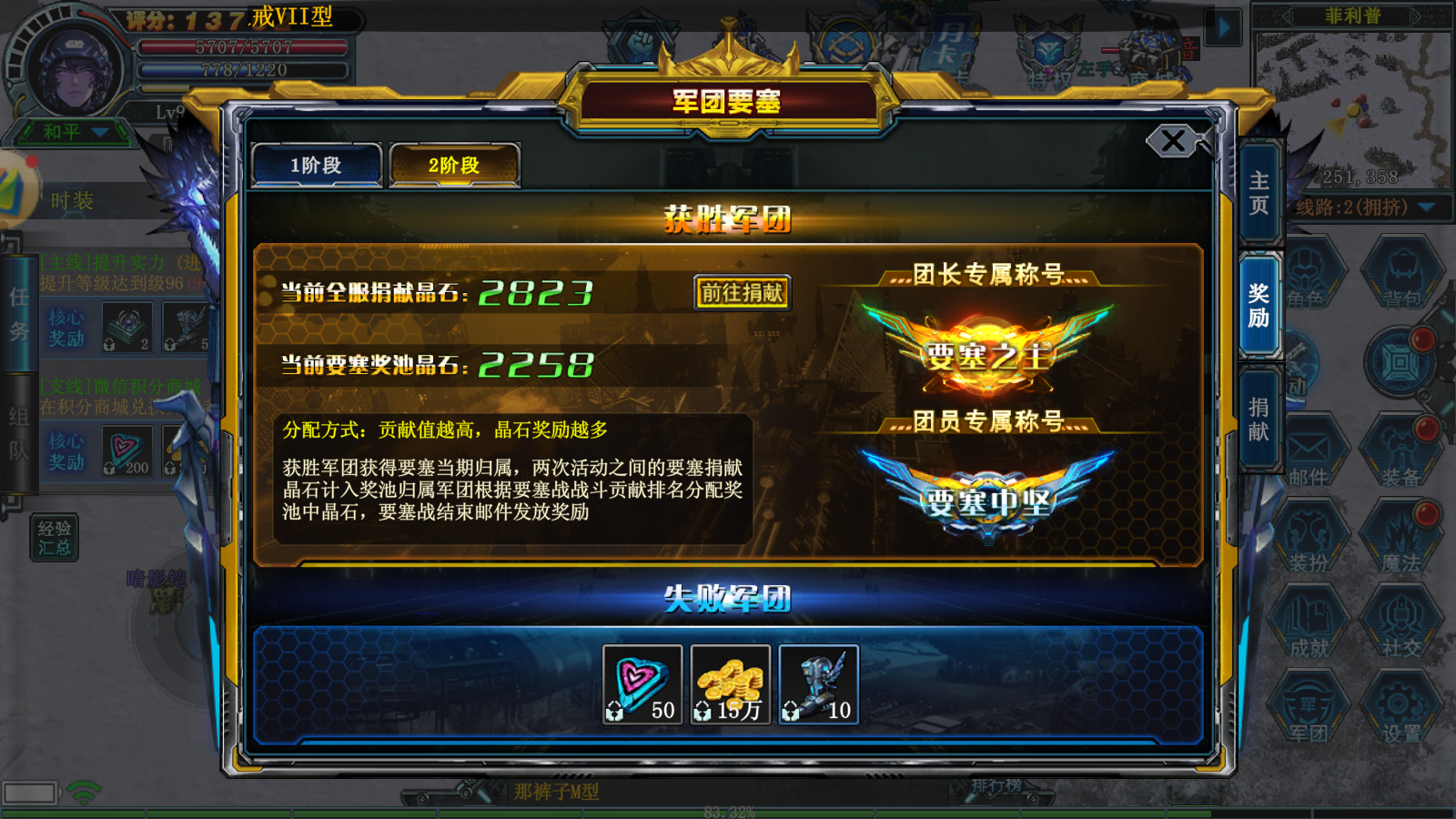 - 军团要塞战:活动前 24 小时军团长报名,20:00-20:30 开战20:00-20:10:进攻军团击打破门,前 3-4 名晋级;占领方剿灭恶灵 BOSS20:10-20:30:争夺 4 个能量球积累能量值,排名第一获要塞归属权贡献奖励:击败玩家获 5 点贡献,攻击 / 回复能量球获 1 点贡献,可兑换高阶材料