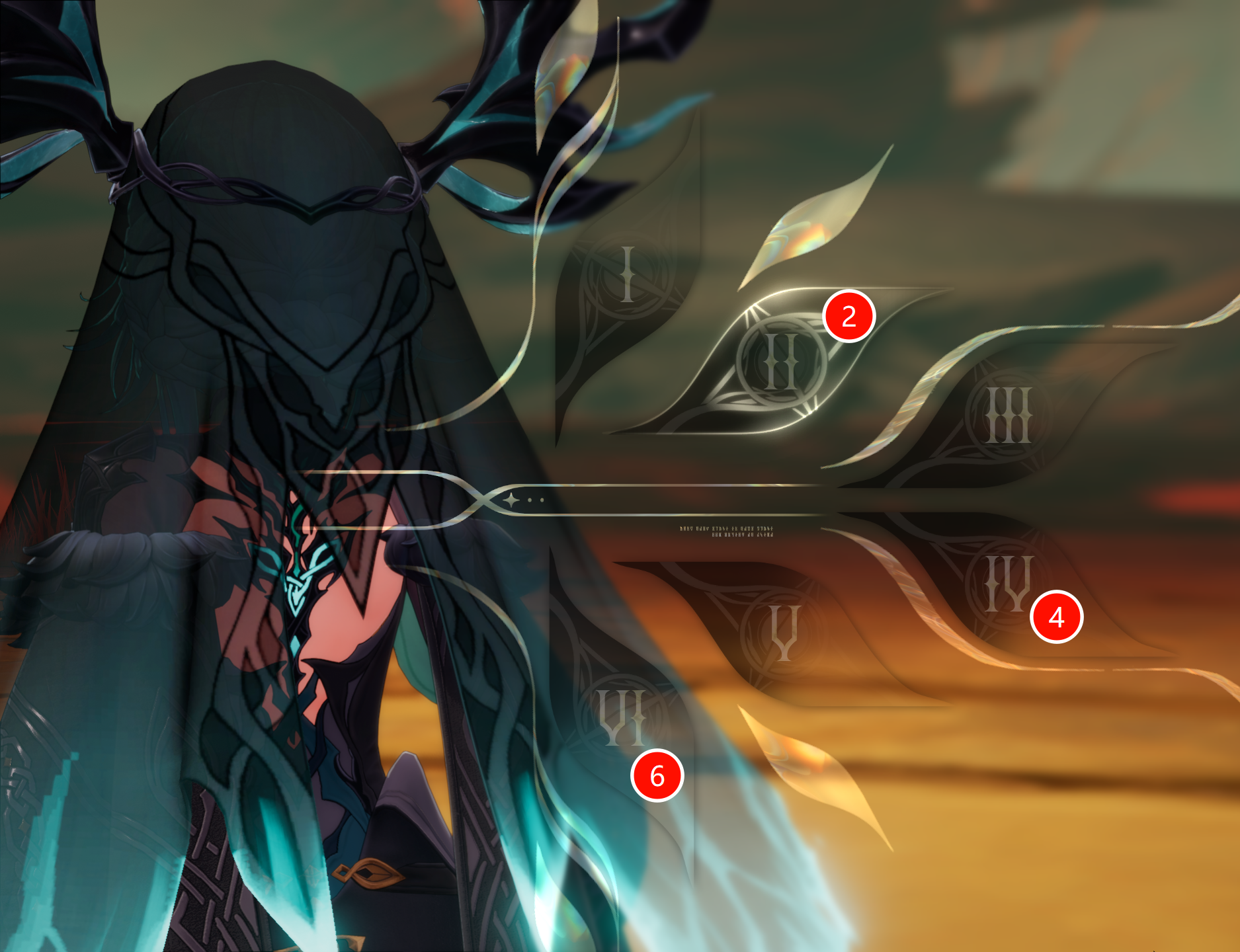 第六根源:使用远程武器造成伤害时,有25.0%概率在目标位置随机生成1枚[月猎]或[日食],效果每秒最多触发1次。(第6根源是质变点,极大提升输出续航)