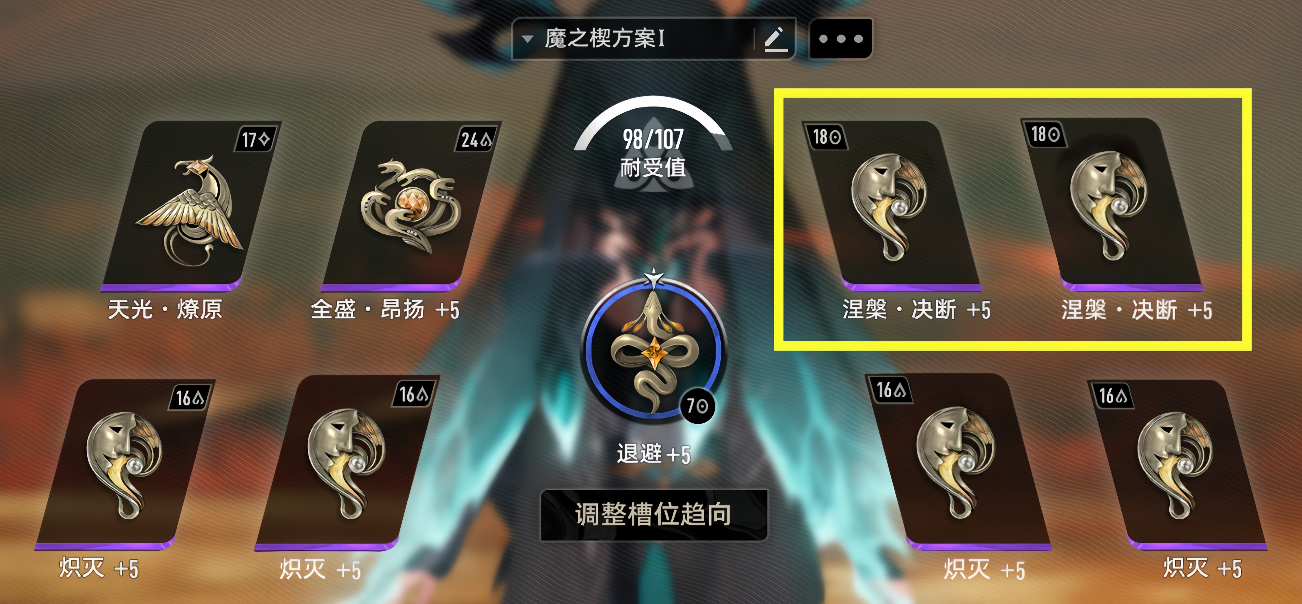 黄色方框内也可以替换为【炽灭】+【羽翼·鼓舞】或 2【炽灭】