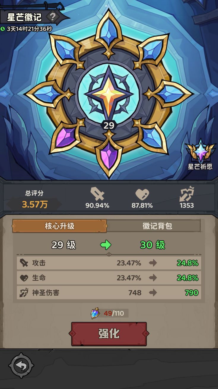 - “星芒核心”的升级依赖于消耗“星芒尘晶”,探险家们可以将徽记背包里多余的“星芒徽记”进行分解,从而获得升级核心的道具。