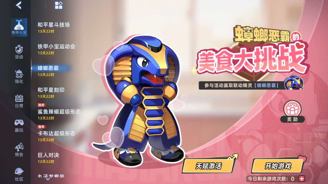 本周我们迎来了联动精灵蟑螂恶霸,参与蟑螂恶霸的美食大挑战活动,完成指定目标即可获得。