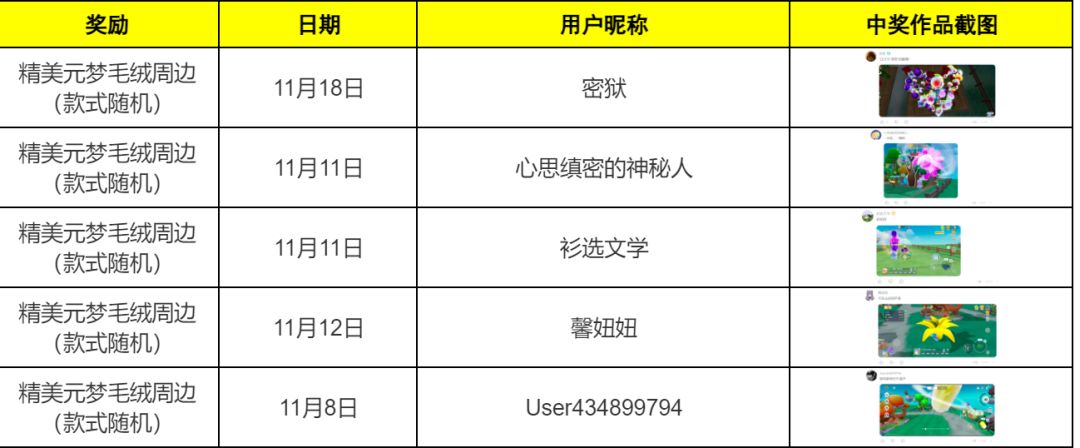 活动结束后将随机挑选5名幸运儿降临奇迹之光,送上精美元梦毛绒周边(款式随机)!