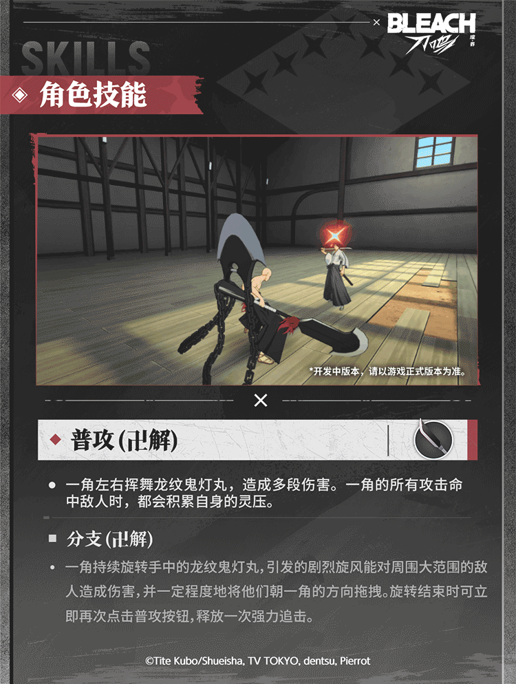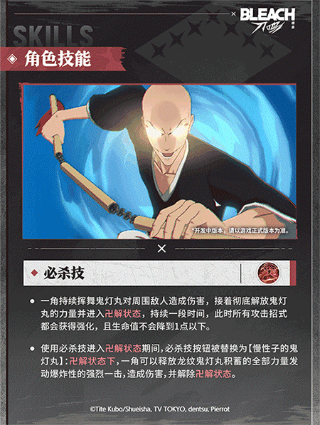 游戏中的一角主打近距离范围输出,卍解后将获攻击方式焕新、全技能强化的大幅变化,既具备出色聚怪能力,必杀技也能造成强劲爆发伤害。