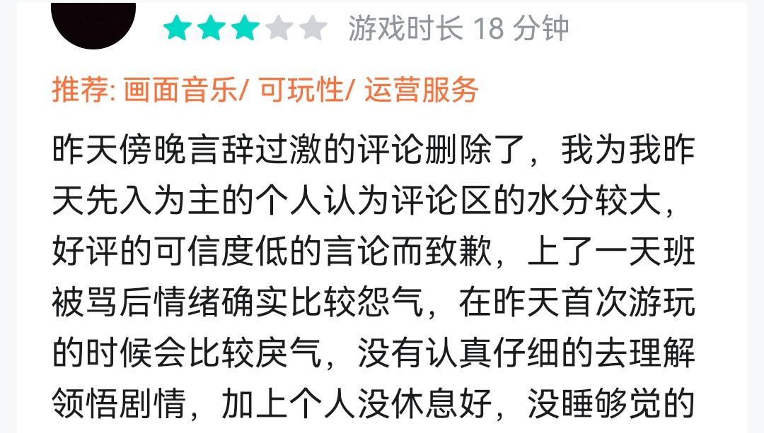 今天查看评论区的时候发现上文提到的玩家宝宝悄悄改了评论:
