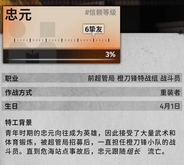 被超管局招募后,一直担任橙刀锋小队的战斗员。