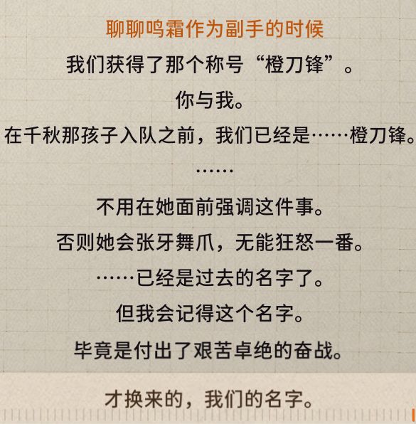 鸣霜听从姐姐鸣烈的建议,成为组长的副手,跟组长一起获得“橙刀锋”的小组称号。