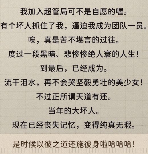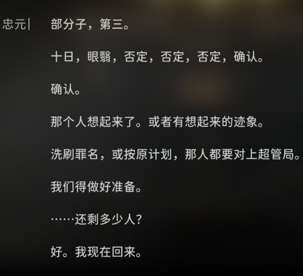 根据语音声线,这段话是忠元说的。很早之前,忠元跟组长一起加入了超管局。