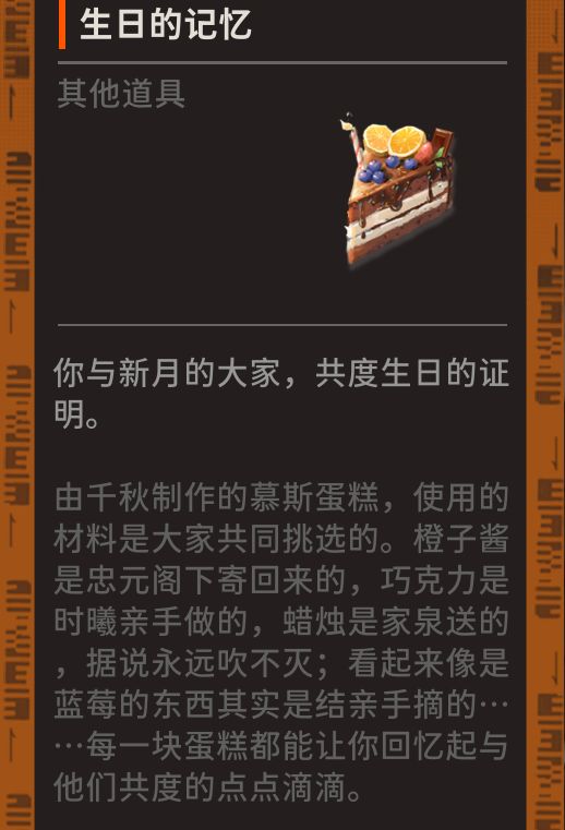 5.周年庆更新的生日剧情里没有忠元,但有寄来橙子酱。二周年应该也会更新生日剧情,推测忠元是在二周年后回来