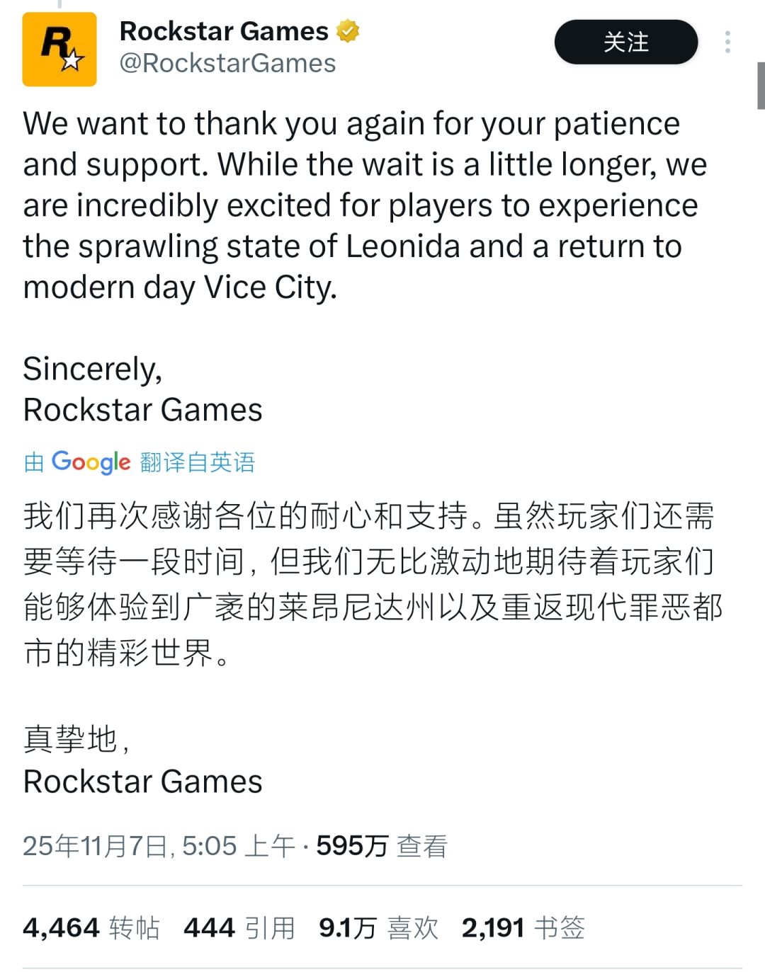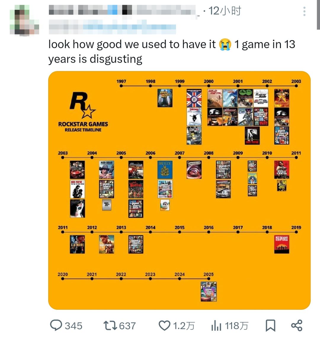 事情起因:R星11月7号发布游戏圈重磅消息,没错,没错延期了,GTA6将延期到明年11月19日星期四发布,相信不少玩家真的彻底疯狂,心都碎了,并且留言纷纷吐槽质疑,虽然R星做出了解释看的出来很无奈,但不得不说,为了打造更好的游戏内容和精良的说词真的全世界统一是吧,我只能你赢了R星