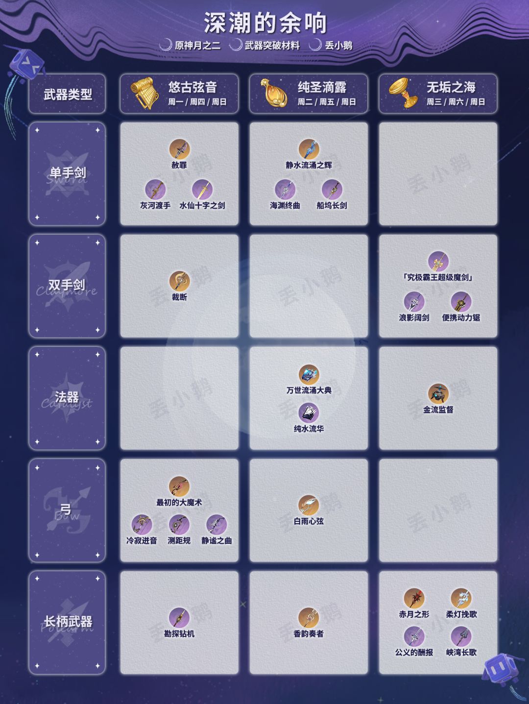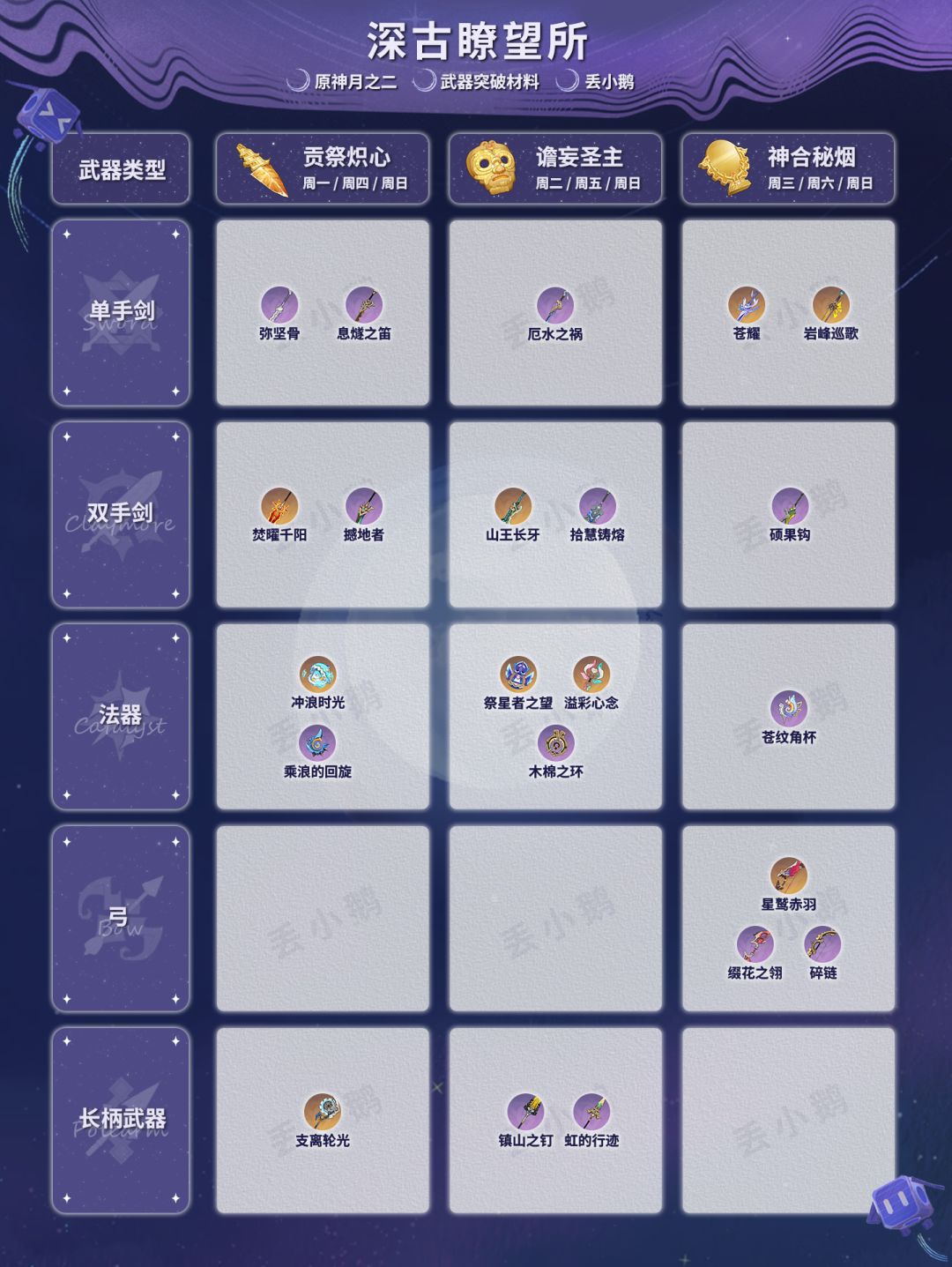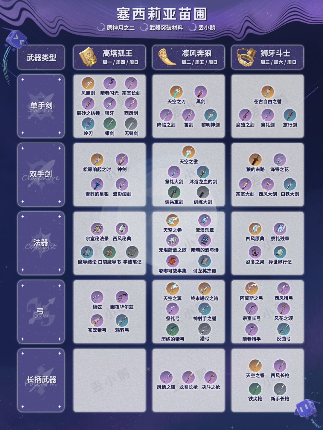 我是丢小鹅,为你带来【原神月之二】全武器突破材料。