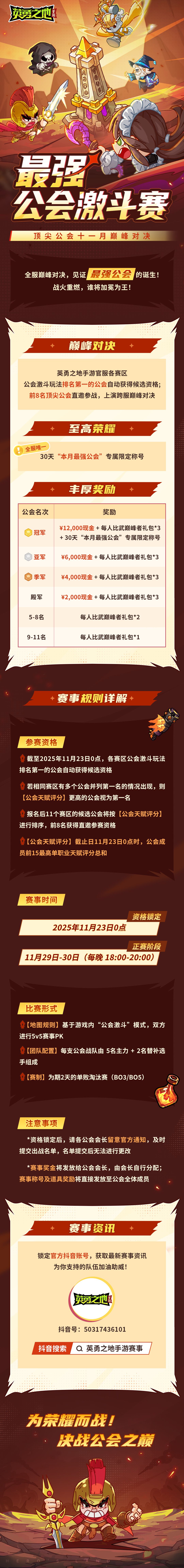 【11月最强公会激斗赛】热血开启!各大赛区顶尖公会直邀参战,上演跨服巅峰对决,争夺