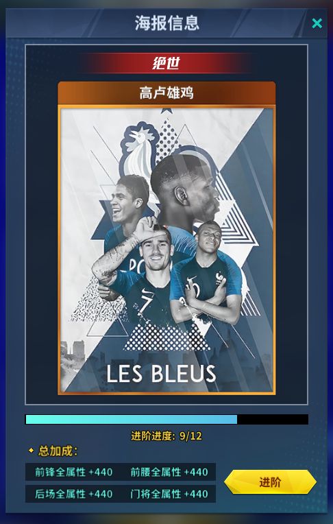 当合成为一张海报后,只要本幅海报相关的任意部分海报到达一定数量后,即可进阶此海报获得更高的属性!