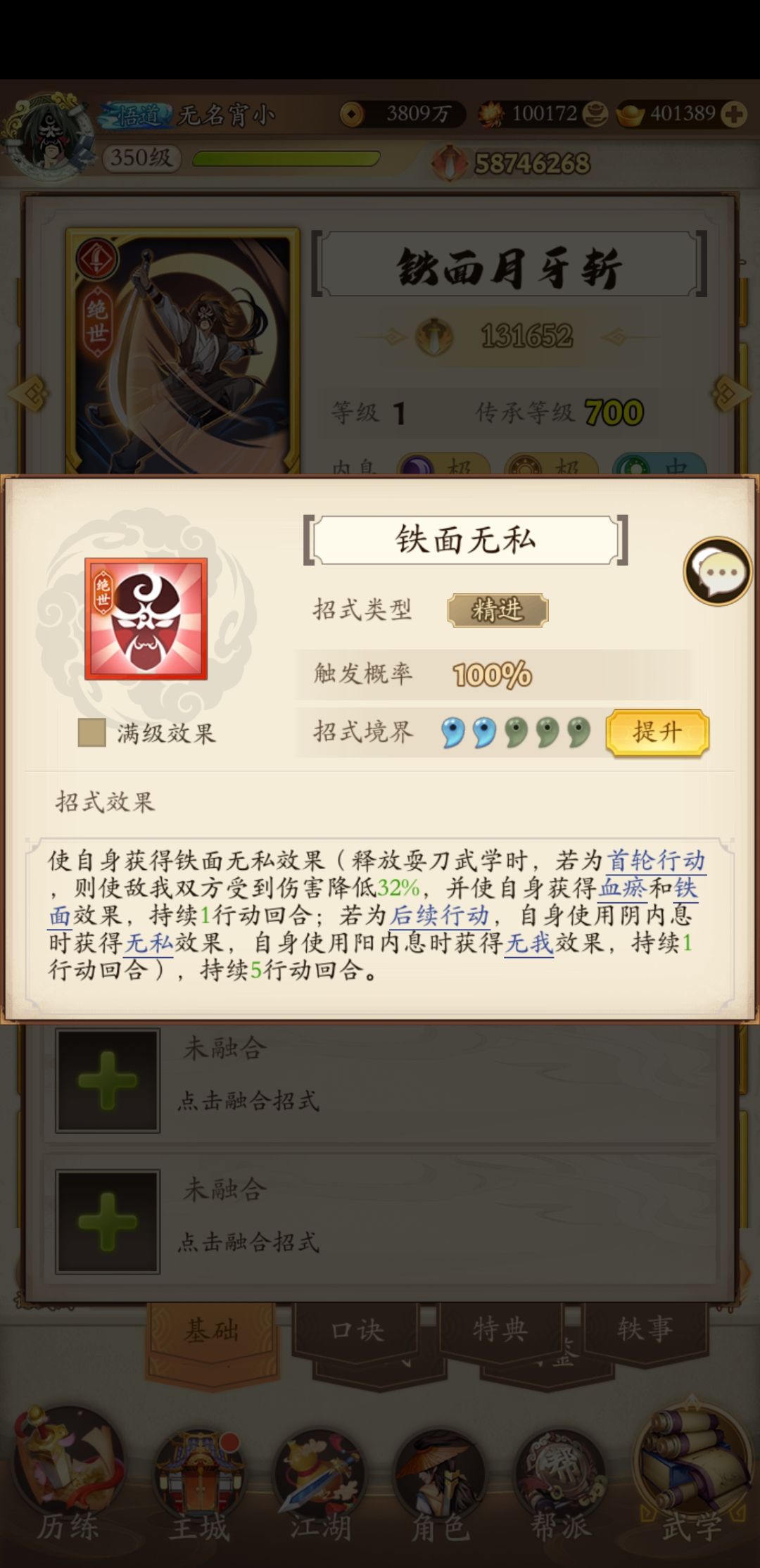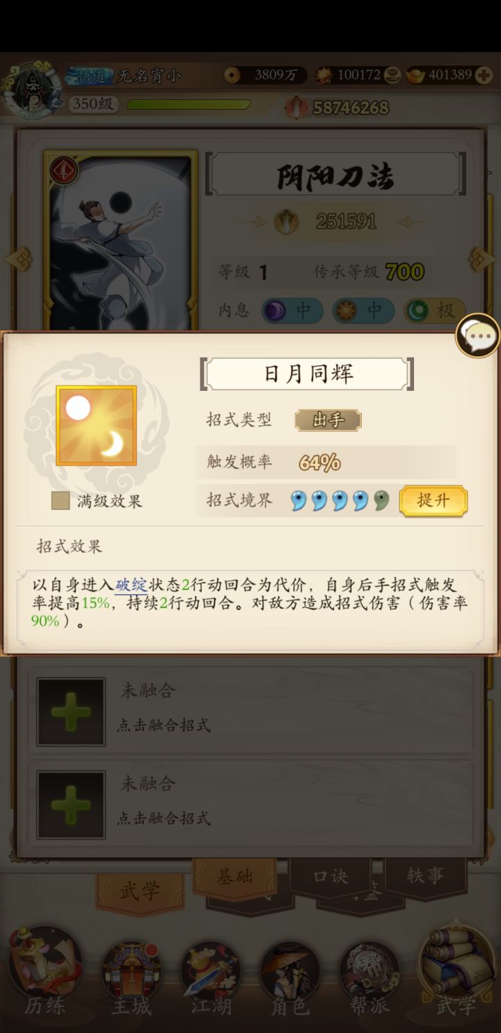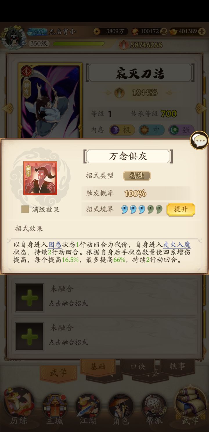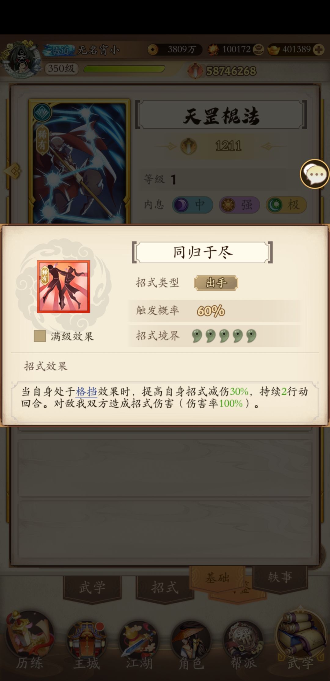 奇门是真的奇葩,有给对面送走火入魔的八荒六合枪,要想解就锁搭配伏魔棍法,还得赌不受控制。有降低自身3回合50%暴击率的绝世狼牙棍法,50%体现了数值的美,更有一个除了打塔就没见过有人带的自杀招式同归于尽,好一个同归于尽,综合排名并列第一。