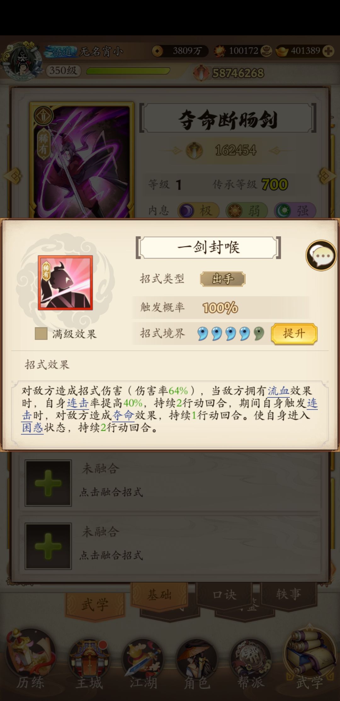 不愧是你牢刀,刀系以1绝世、4稀有、2普通武学的绝对优势遥遥领先,其次是奇门1绝世、2稀有、1普通武学,剑系1绝世、2稀有,最后是2普通武学的拳系。