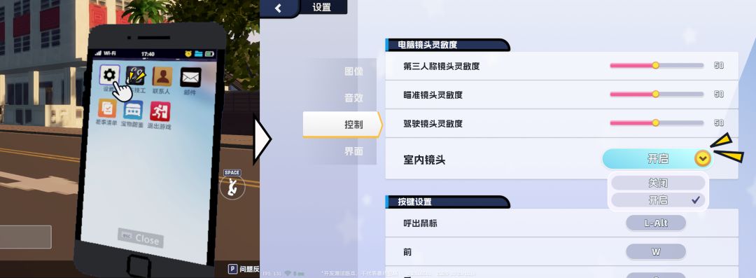 在版本更新后,您可以打开【手机】-【设置】-【控制】来开启【室内镜头缩放】功能。开启该功能后,角色在进入【室内】时,会自动进行镜头缩放。我们希望这有助于改善玩家位于室内时的镜头体验。该功能目前还在测试中,因此默认为关闭状态,需要手动在设置中开启。