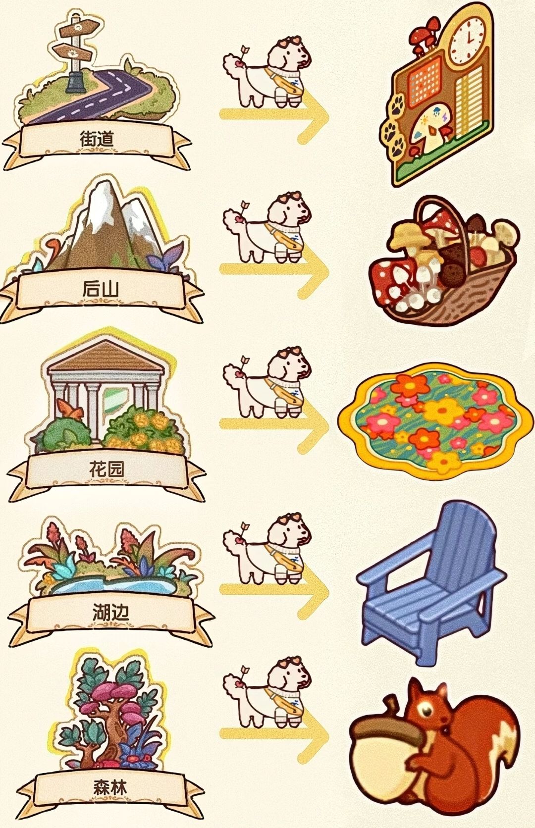 图1~图5∶宠物出游,小镇的和郊外的,猫狗分别能带回来的对应物品。