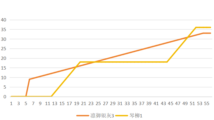 可见在银灰第一次技能期间凛御银灰大部分时间内都优于琴柳。