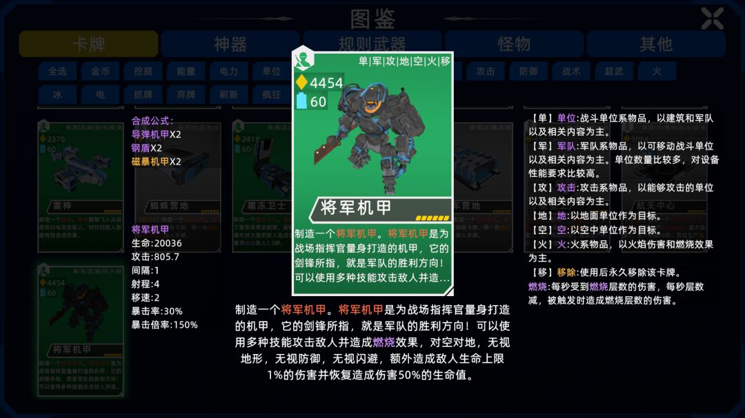 1.新增了军队新的扛把子【将军机甲】及其合成公式,能单挑boss,属性详见图鉴。