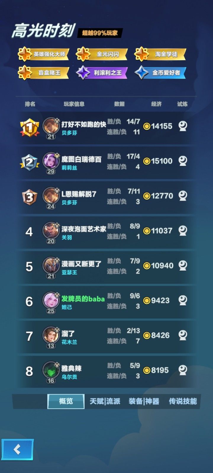 8终极技能25级1彩6金羁绊被2终极三金羁绊19级给杀了,最后他就一个彩色羁绊给10金的第一名给打了,好好好这么玩?