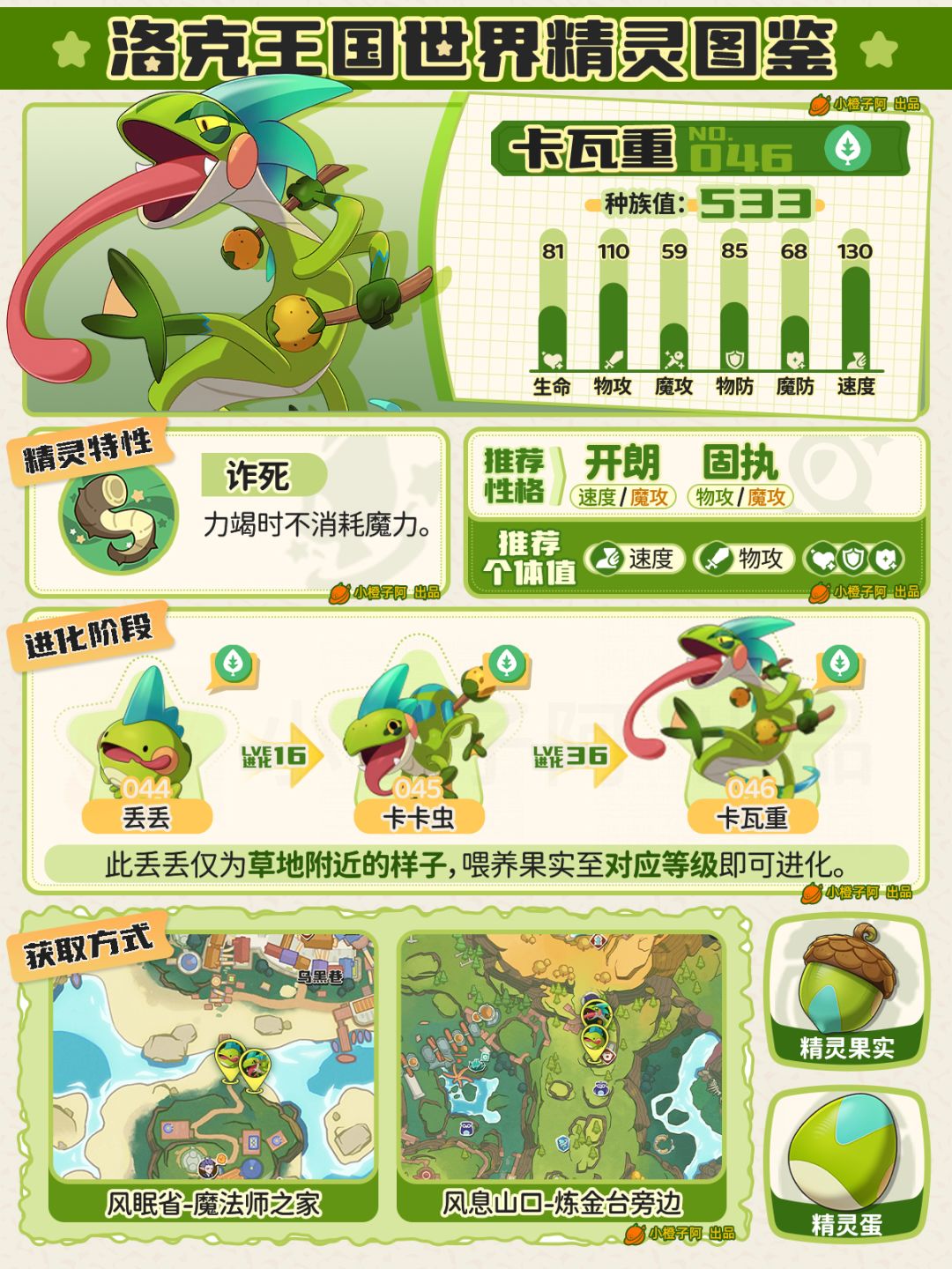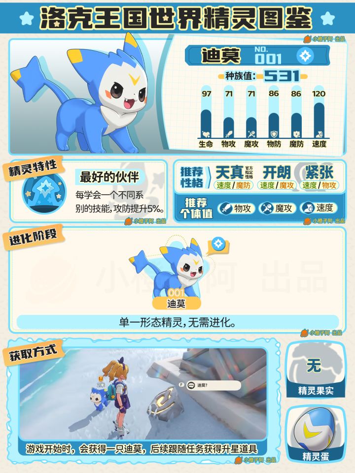 这是橙子第一篇《洛克王国:世界》三测精灵图鉴攻略,作为重度精灵收集游戏爱好者,这次是001迪莫到046卡瓦重的精灵图鉴。
