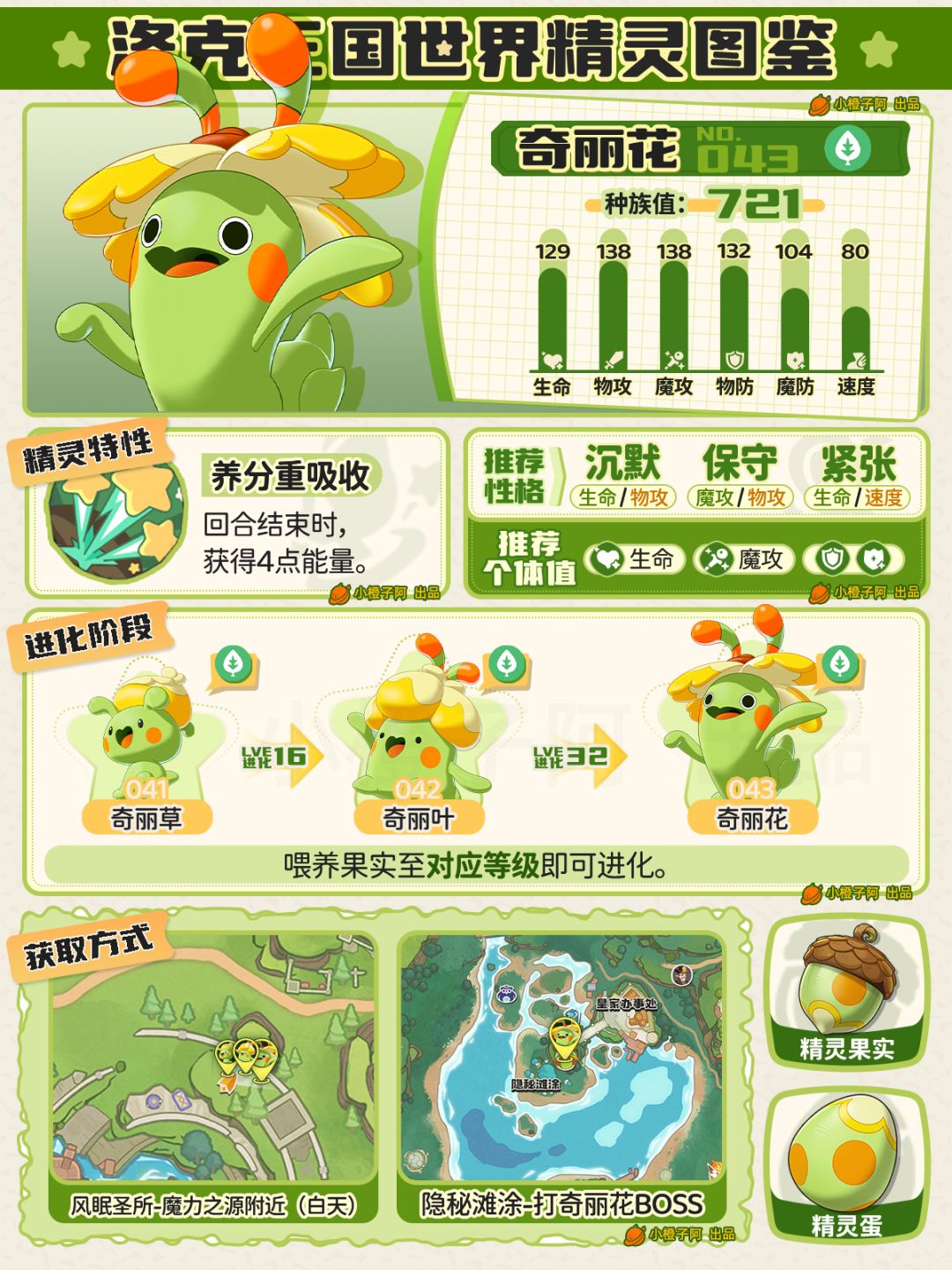 ②图鉴性格、个体值并不是唯一,由于精灵配队多种多样,推荐的性格与个体值会出现差别,有可能橙子图鉴中并没有出现,小伙伴同样可在评论区提出来,橙子会根据现实情况进行修正。